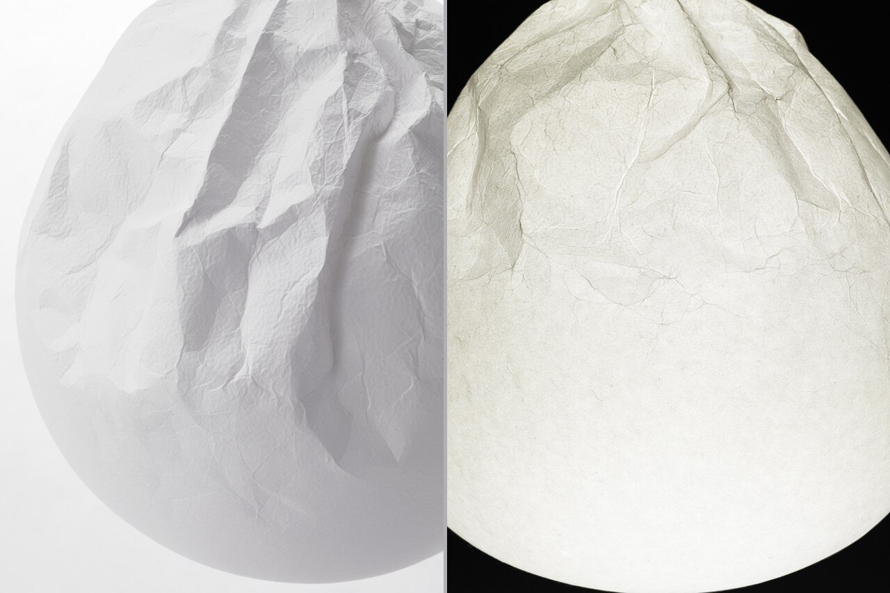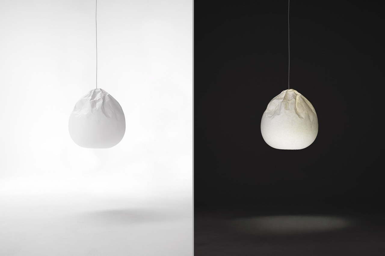 Nendo e l’azienda hanno così deciso di esaltare le caratteristiche di ciascun processo realizzando una collezione di lampade che unisce la tecnica washi a un sistema di stropicciatura e rendendo espliciti entrambi i procedimenti.