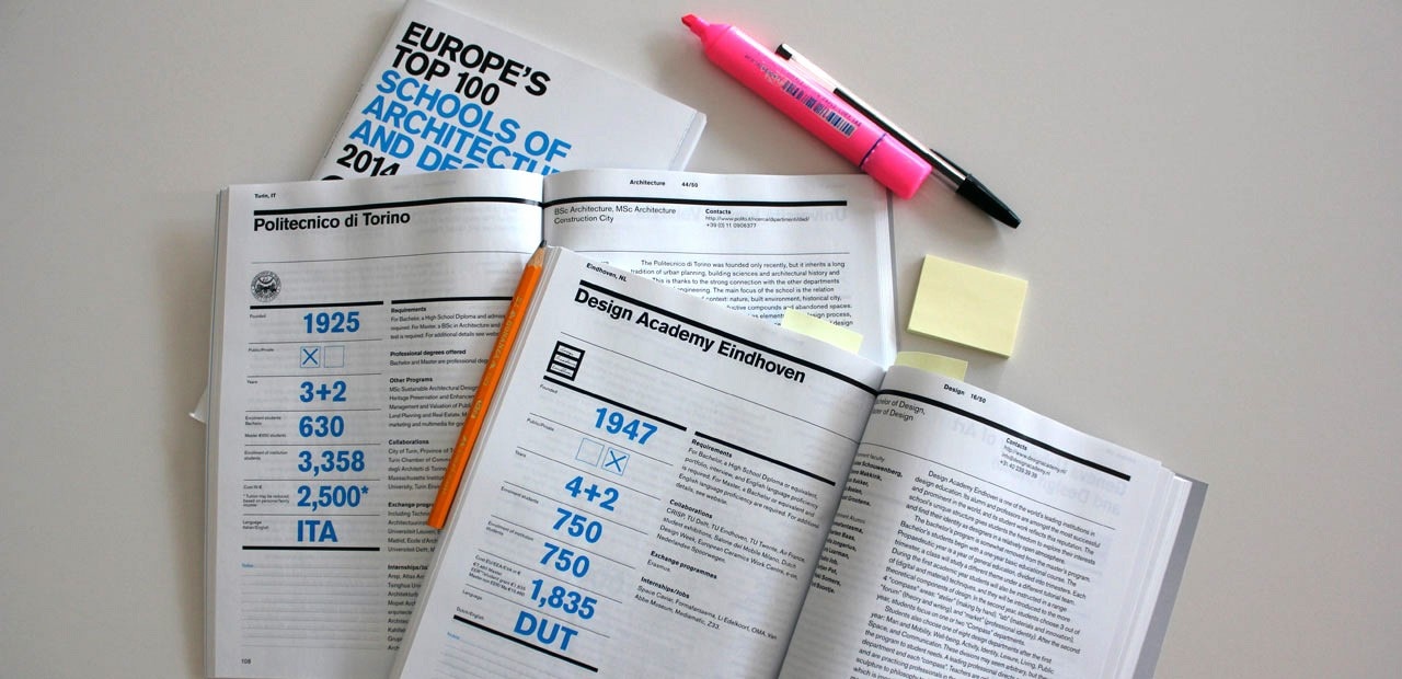 Nella nuova edizione si segnala l’aumento del numero delle scuole italiane che sale a quattordici: Politecnico di Bari, Politecnico di Torino, Università di Bologna Alma Mater Studiorum di Cesena, Università di Ferrara, Università La Sapienza a Roma, Università Roma Tre, Università Iuav di Venezia, Free University di Bolzano, Fabrica di Treviso, ISIA di Urbino, e, a Milano, Domus Academy, Istituto Marangoni, NABA e Politecnico. Crescono anche le scuole francesi e soprattutto le tedesche. Anche quest’anno, entrano nella valutazione paesi come Turchia, Israele Serbia e Slovenia, ai quali si affiancano, per la prima volta, Russia e Croazia, sottolineando il fatto che l’Europa culturale a cui fa riferimento Domus è un'accezione ampia che va al di là di confini geografici e politici.