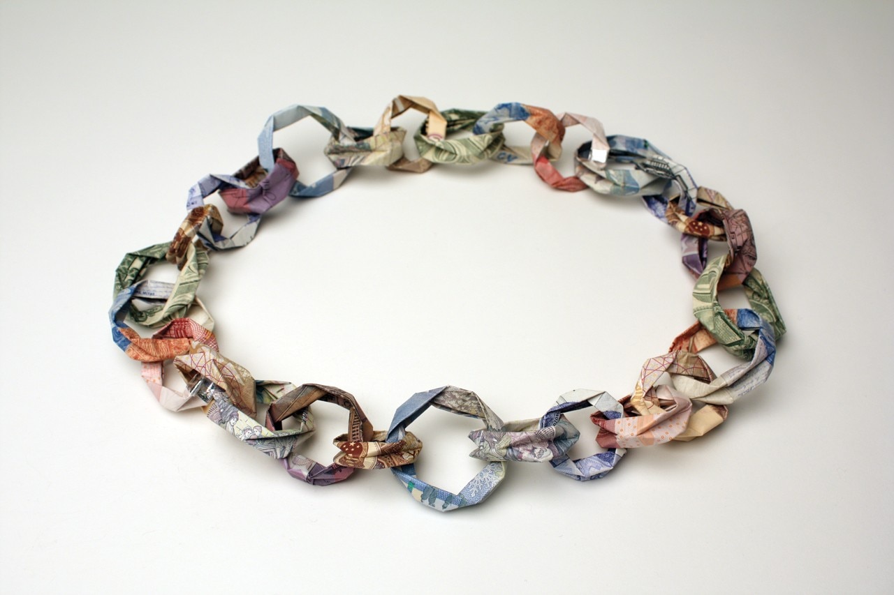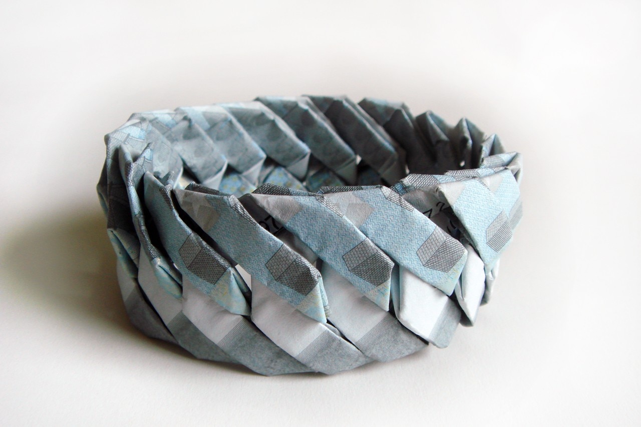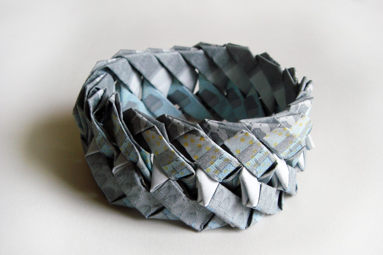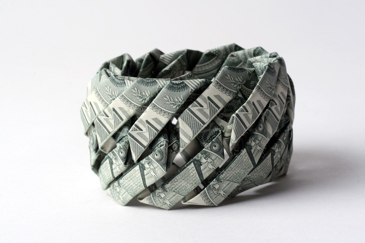 I gioielli disegnati da Tine De Ruysser mostrano la ricchezza di chi li porta in maniera sottile, perché le banconote sono piegate in modo da non essere mai visibili completamente, nonostante siano immediatamente riconoscibili come tali. Semplicemente piegate, prive di tagli e colla, possono anche essere aperte e utilizzate come denaro contante. Tuttavia l’origami innalza il prezzo dell’oggetto, superiore al valore del denaro utilizzato, per permettere al produttore e al venditore di guadagnare, come avviene per qualsiasi altro gioiello.