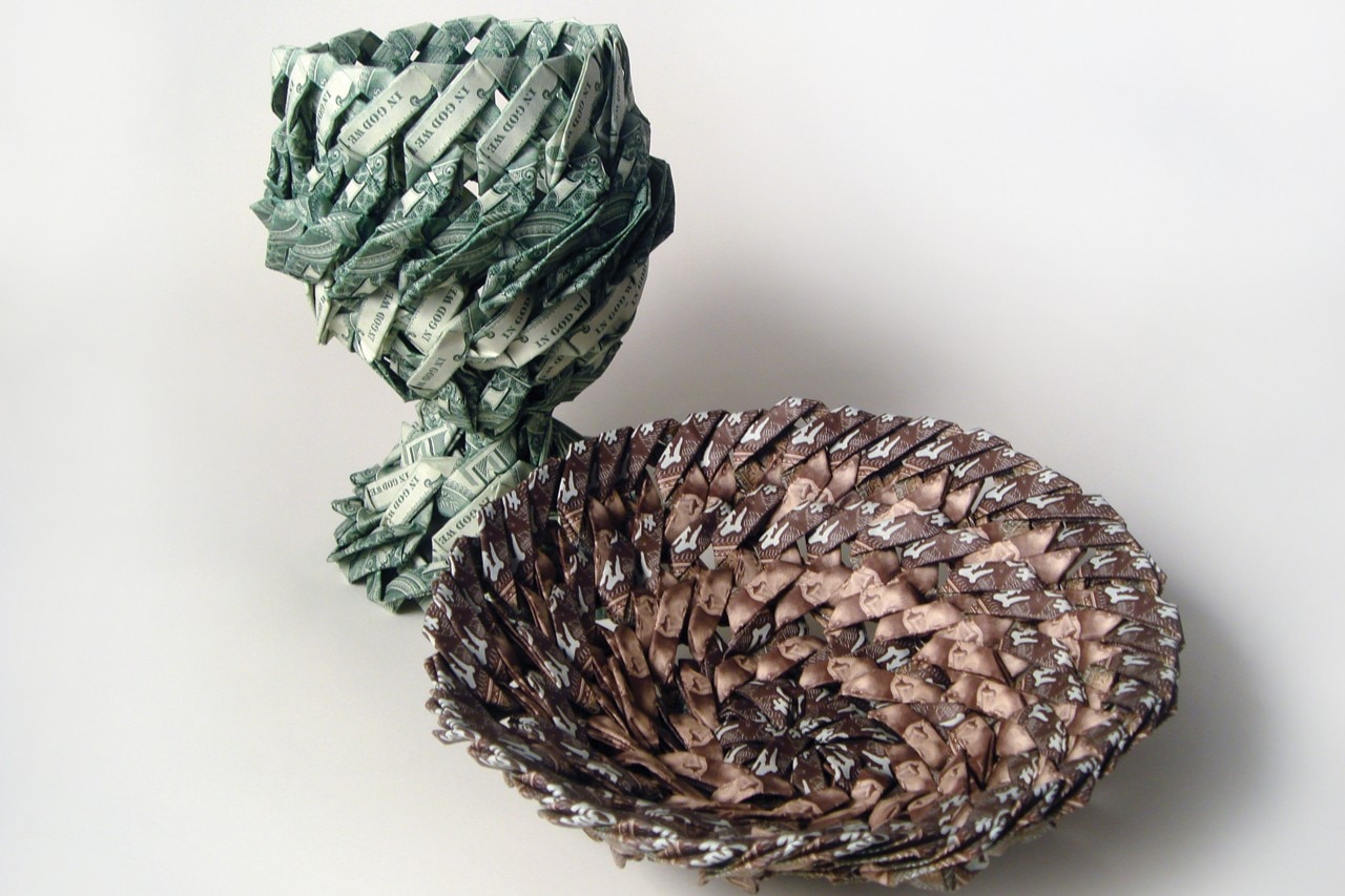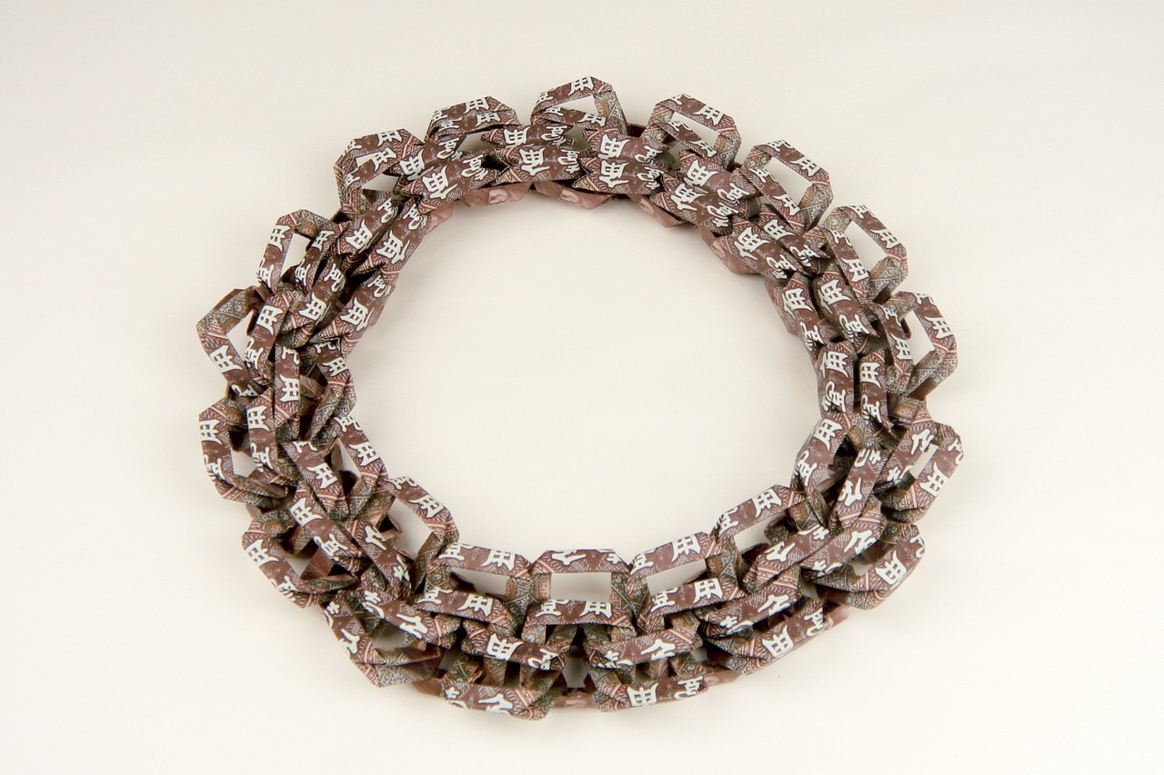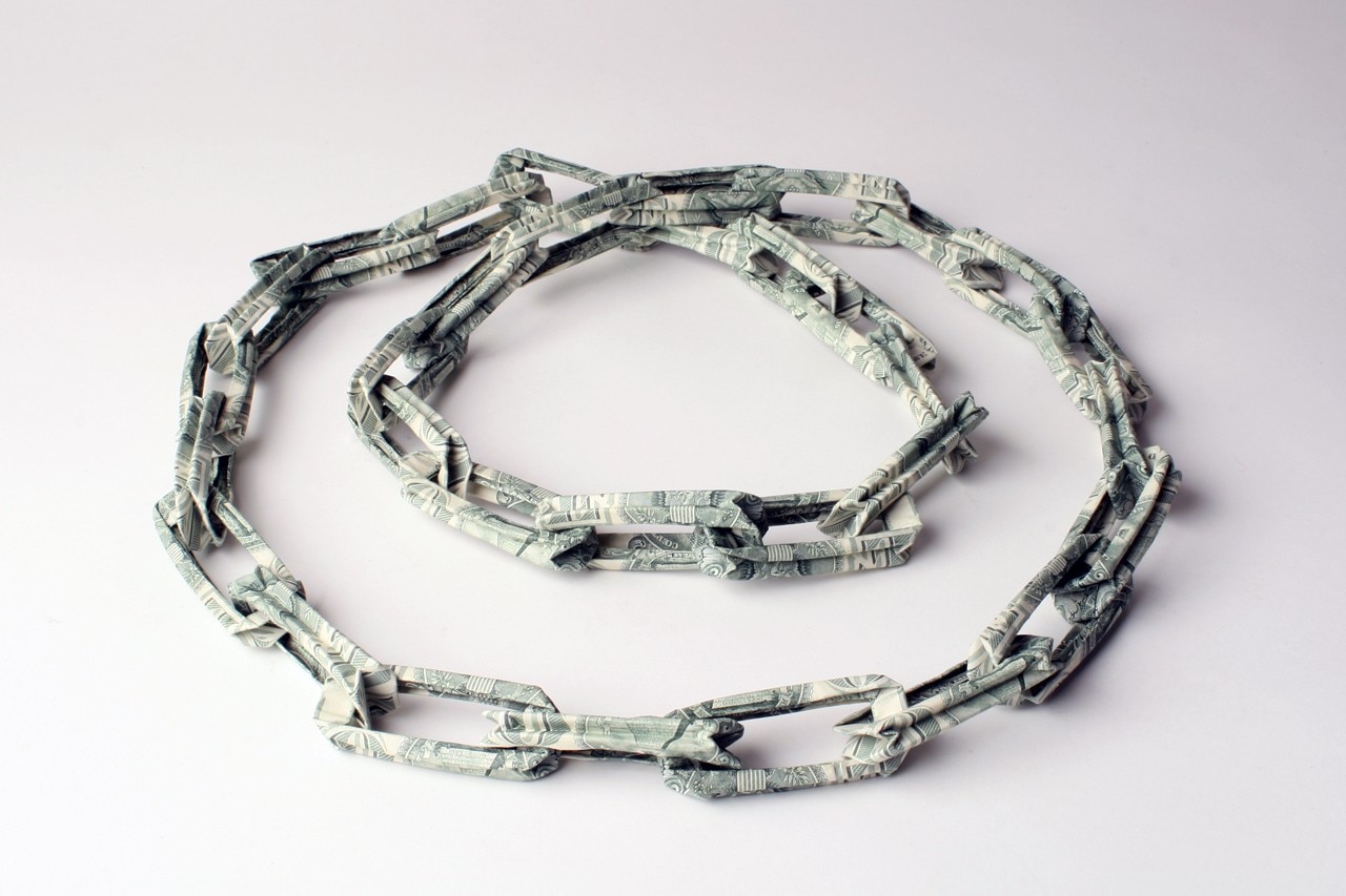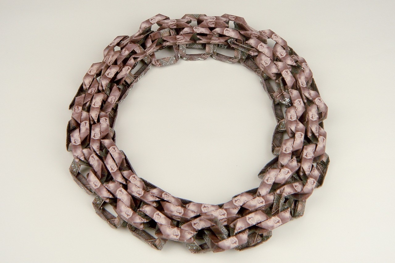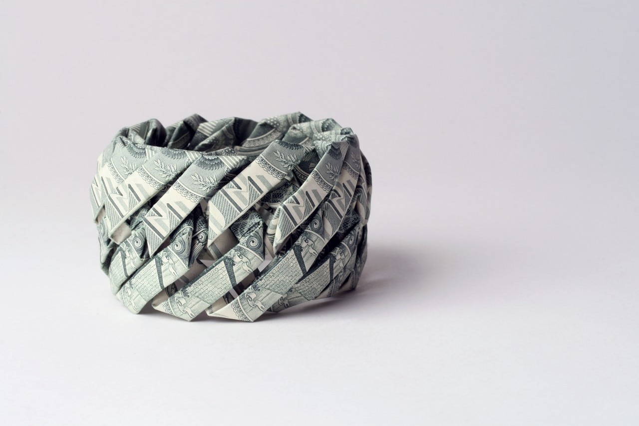 I gioielli disegnati da Tine De Ruysser mostrano la ricchezza di chi li porta in maniera sottile, perché le banconote sono piegate in modo da non essere mai visibili completamente, nonostante siano immediatamente riconoscibili come tali. Semplicemente piegate, prive di tagli e colla, possono anche essere aperte e utilizzate come denaro contante. Tuttavia l’origami innalza il prezzo dell’oggetto, superiore al valore del denaro utilizzato, per permettere al produttore e al venditore di guadagnare, come avviene per qualsiasi altro gioiello.