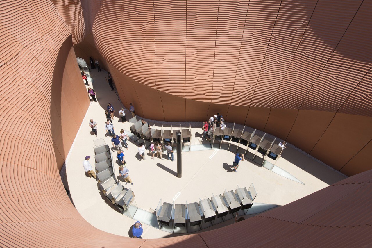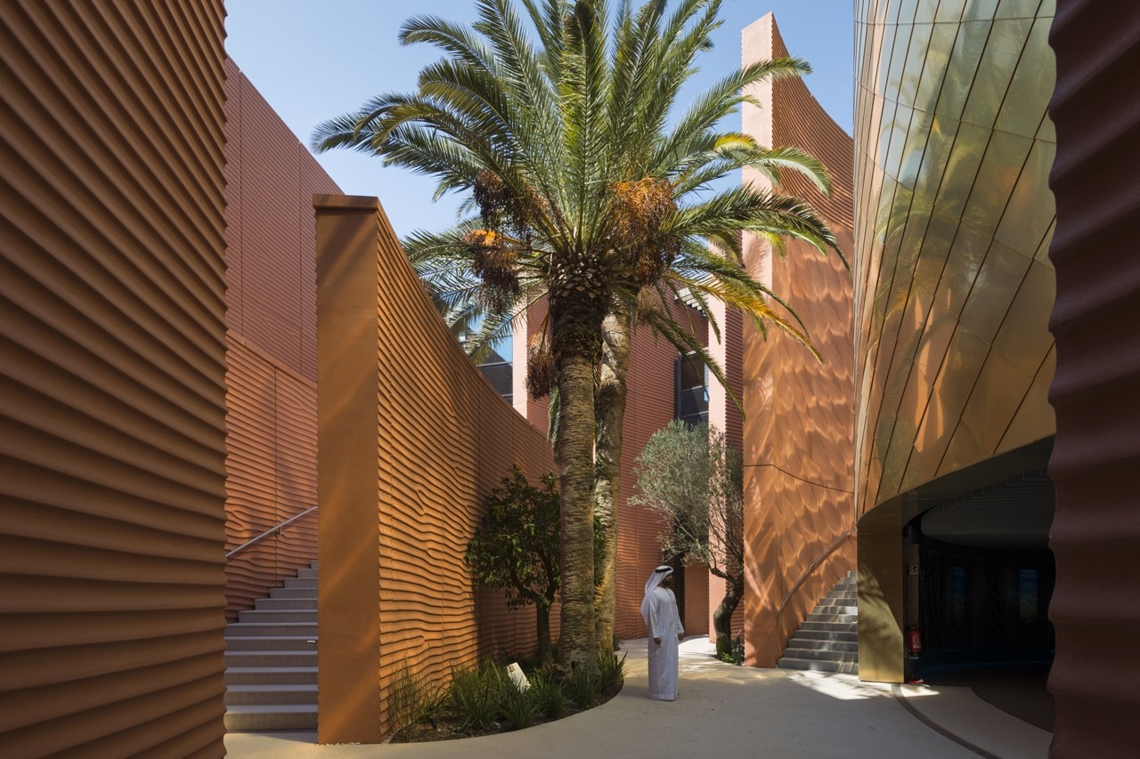 Una rampa conduce dolcemente dall’ingresso verso l’auditorium più in alto. Lungo questo percorso gli acquedotti di irrigazione che hanno tradizionalmente sostenuto l’agricoltura nella regione sono riproposti in forma digitale, mentre i dispositivi di realtà aumentata contribuiscono a raccontare in maniera vivida la storia degli Emirati. Un vero e proprio auditorium è ospitato nel cuore del padiglione. Dopo la proiezione i visitatori seguono il percorso che si snoda attraverso ulteriori esposizioni interattive e digitali, tra cui una mostra speciale che celebra Dubai come città ospitante per l’Expo 2020.