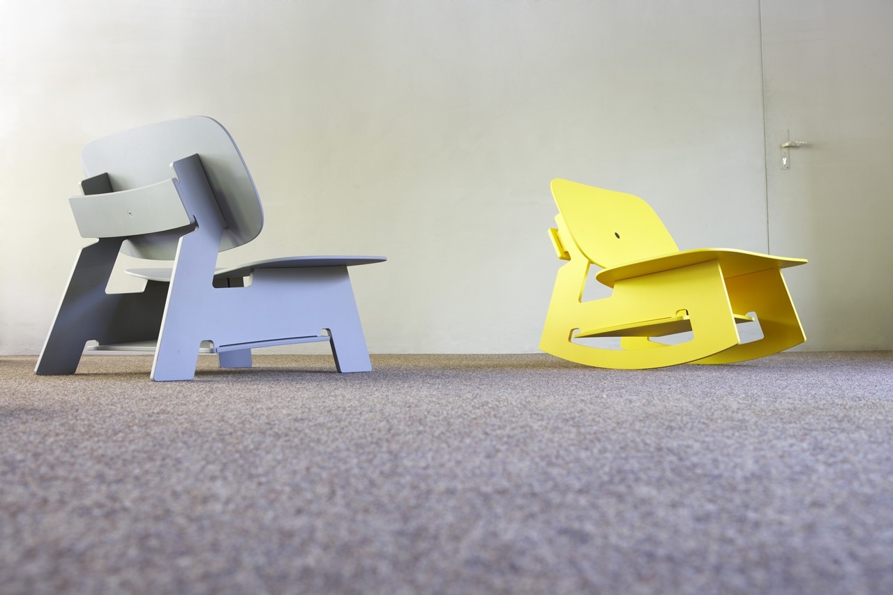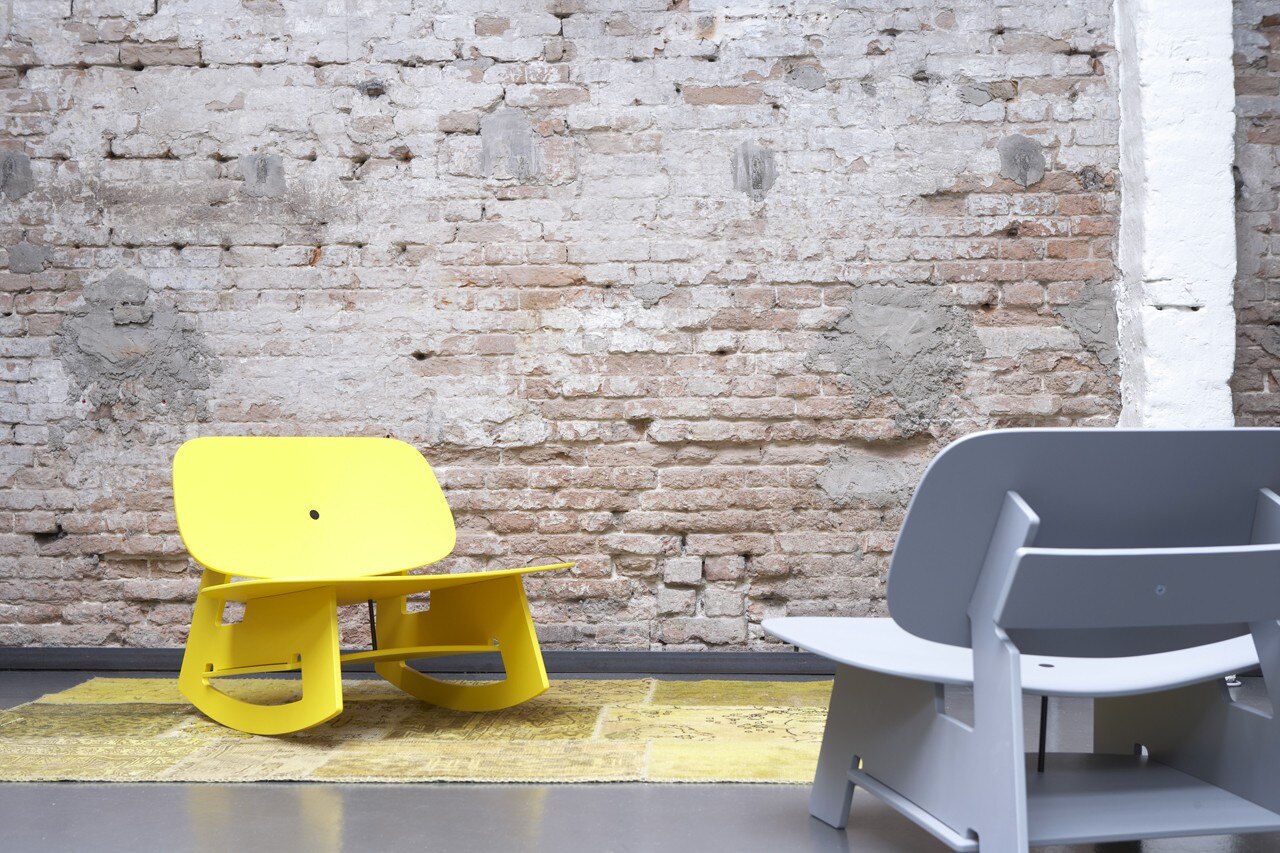 Pliet, Lobbyist Rocker, sedia a dondolo, e Lobbyist Lounger, seduta. Design: Dominik Lutz.