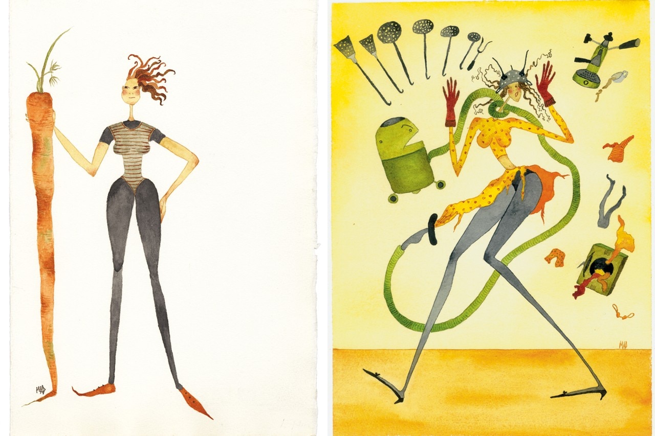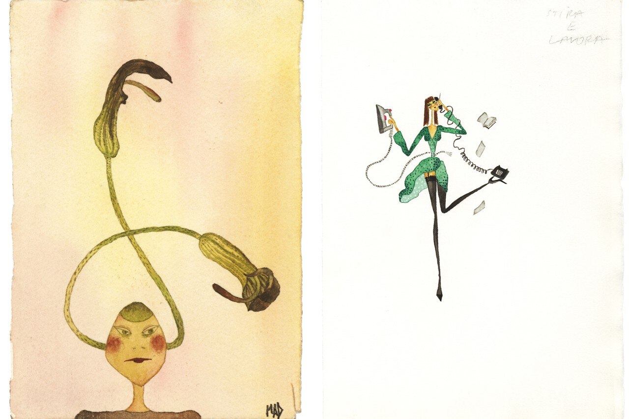 In mostra alla galleria Riccardo Crespi una serie di opere su carta, differenti per soggetto e tecnica (acquarello, matita, pennarello), ma tutte accomunate dallo sguardo acuto e ironico dell’autrice.