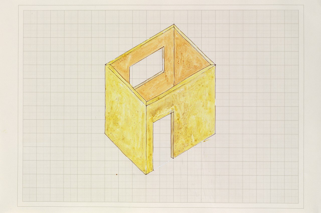Rachel Whiteread, Study for Room, 1993. Inchiostro, acquerello e correttore liquido su carta millimetrata, 42 x 59.5 cm. Courtesy Galleria Lorcan O’Neill Roma