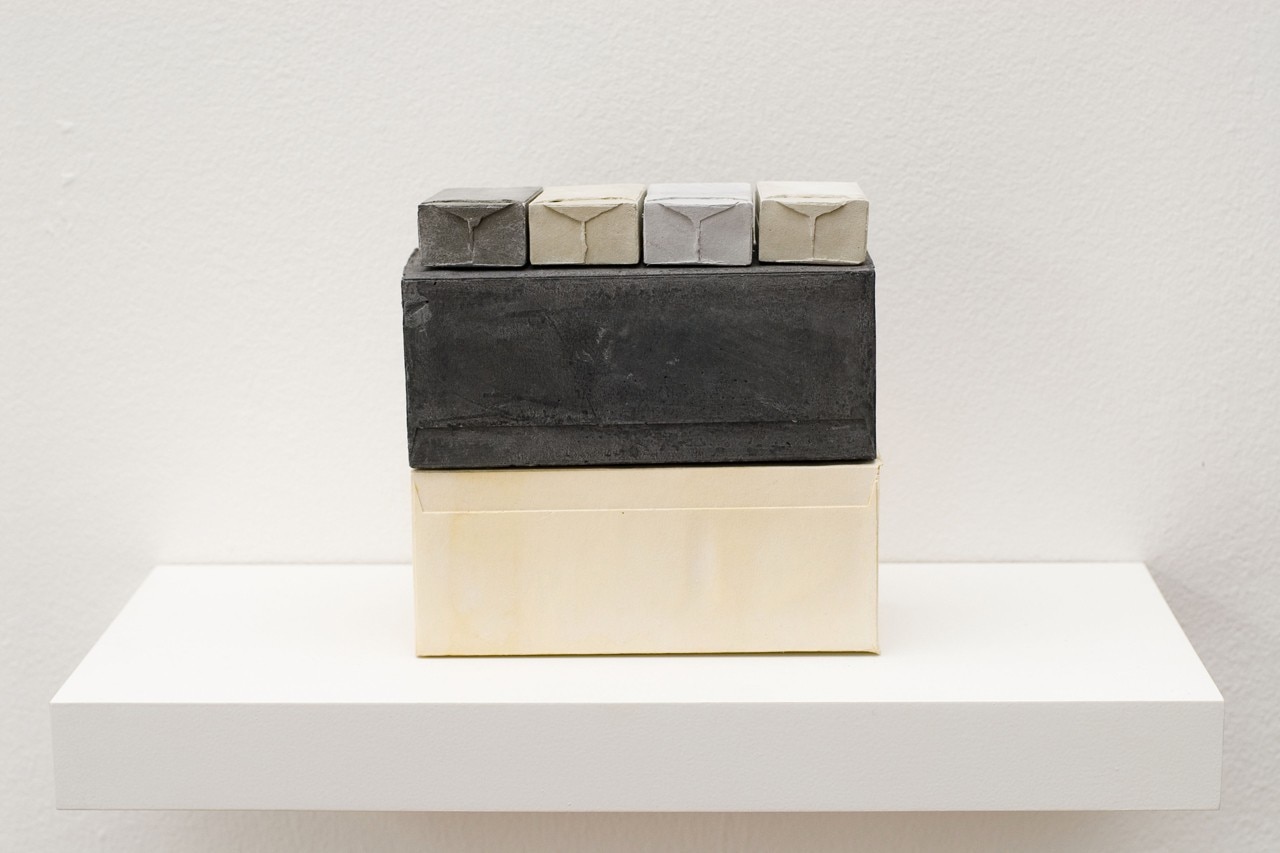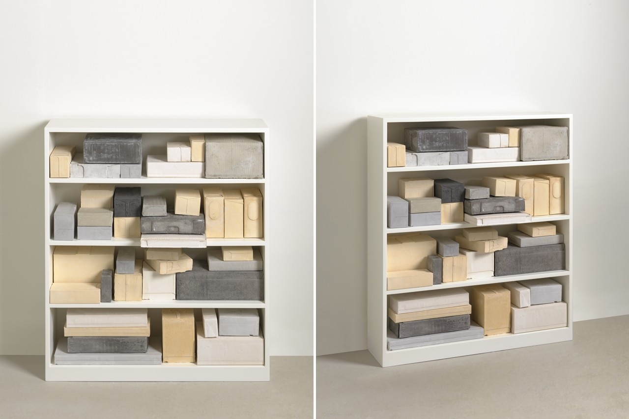 Rachel Whiteread, Model IV , 2006. Gesso, legno e alluminio (1 scaffale, 6 unità), 20.5 x 40 x 20 cm. Courtesy Galleria Lorcan O’Neill Roma