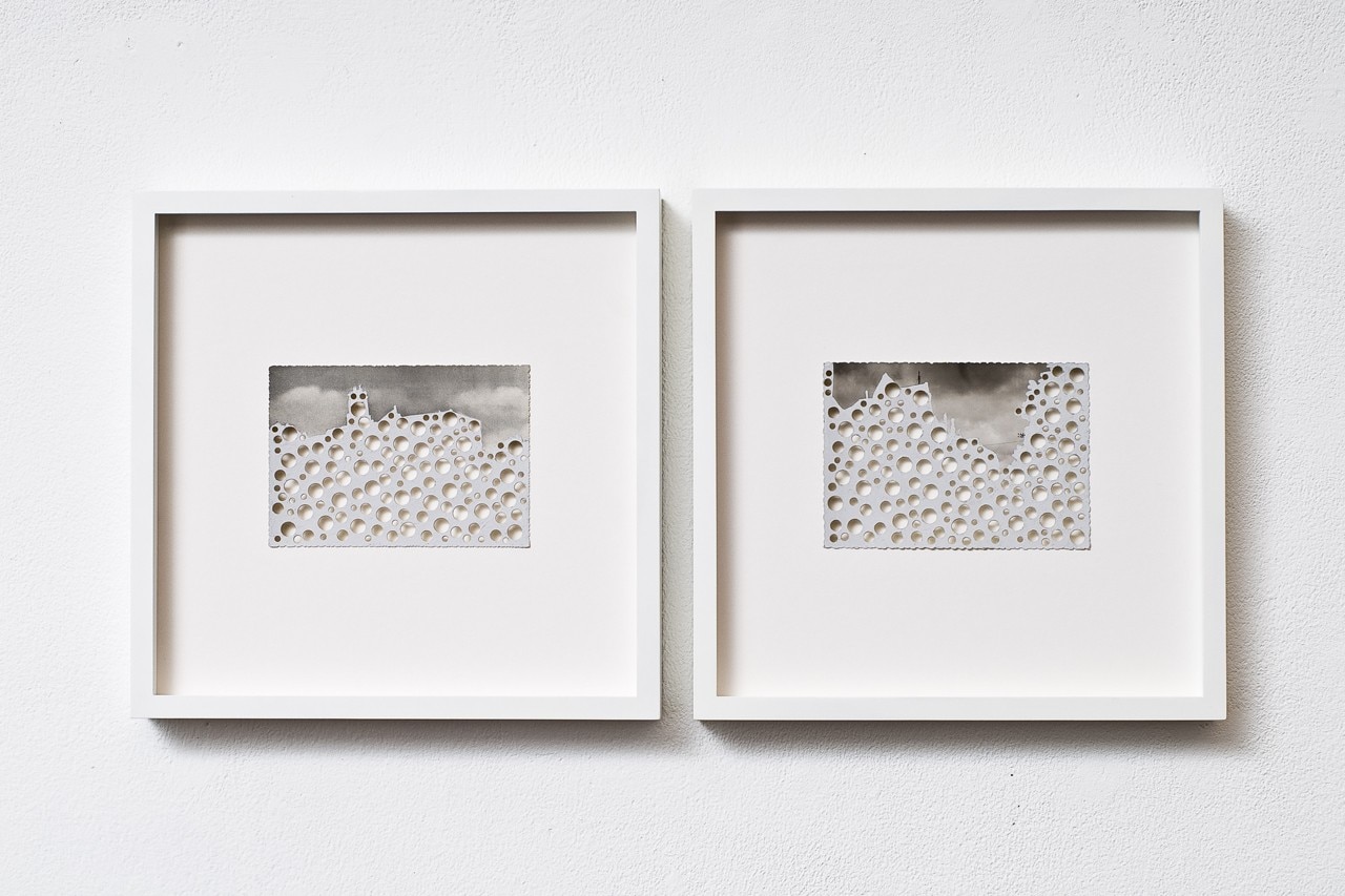 Rachel Whiteread, Clouds (A), Valley - rural (B), 2010. Cartolina con gouache e fori, 10 x 14.2 cm. Courtesy Galleria Lorcan O’Neill Roma