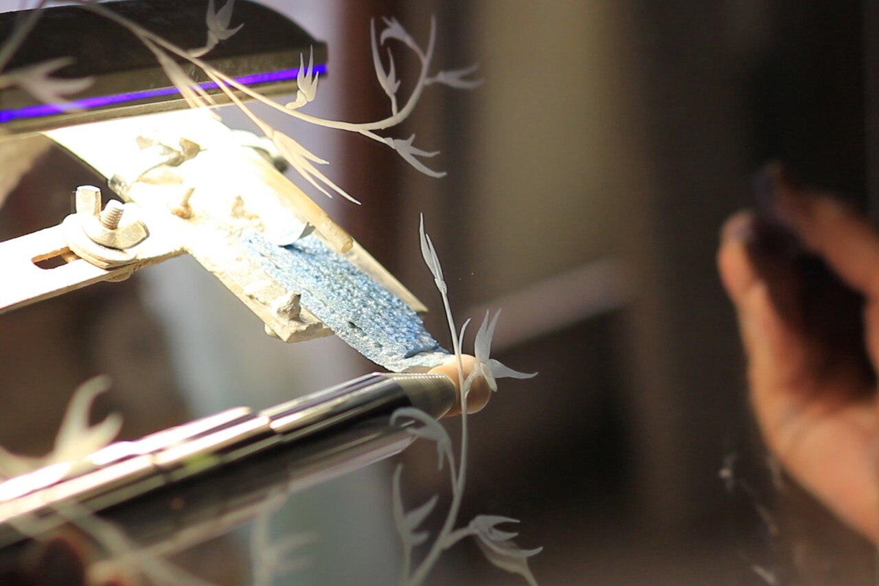 Elena Mazzi, Reflecting Venice, installazione di materiali vari, due stampe ink-jet su carta, erbario, specchio, vetro di scarto, video 12', 2014