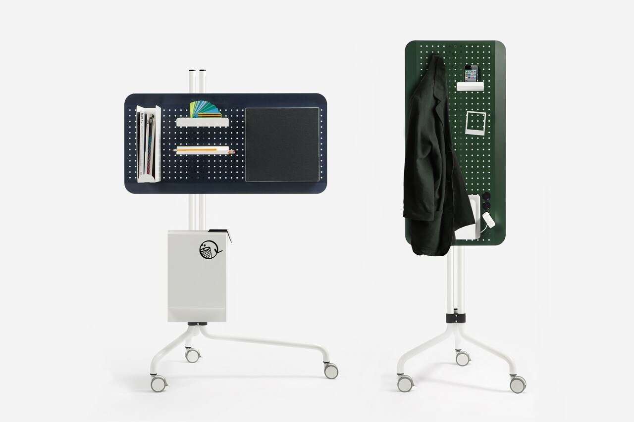 Composto da una struttura tubolare e un ripiano perforato in acciaio, Islands è disponibile in diversi colori. Il piano è la base su cui applicare gli accessori, tra i quali un appendiabiti, una mensola, un portariviste, la cassetta della posta, un portamatite, una cassaforte, un pannello insonorizzante e dei contenitori di tre diverse dimensioni.