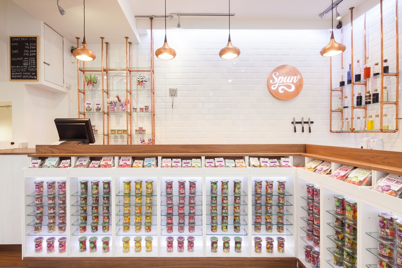 Per il primo negozio Spun a Covent Garden, Data Nature Associates assume l’aspetto artigianale della produzione di caramelle come ispirazione principale utilizzando le finiture di pregio come mezzo per evocare valori e processi tradizionali.