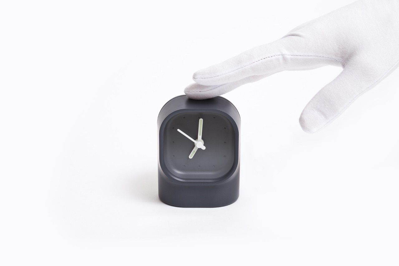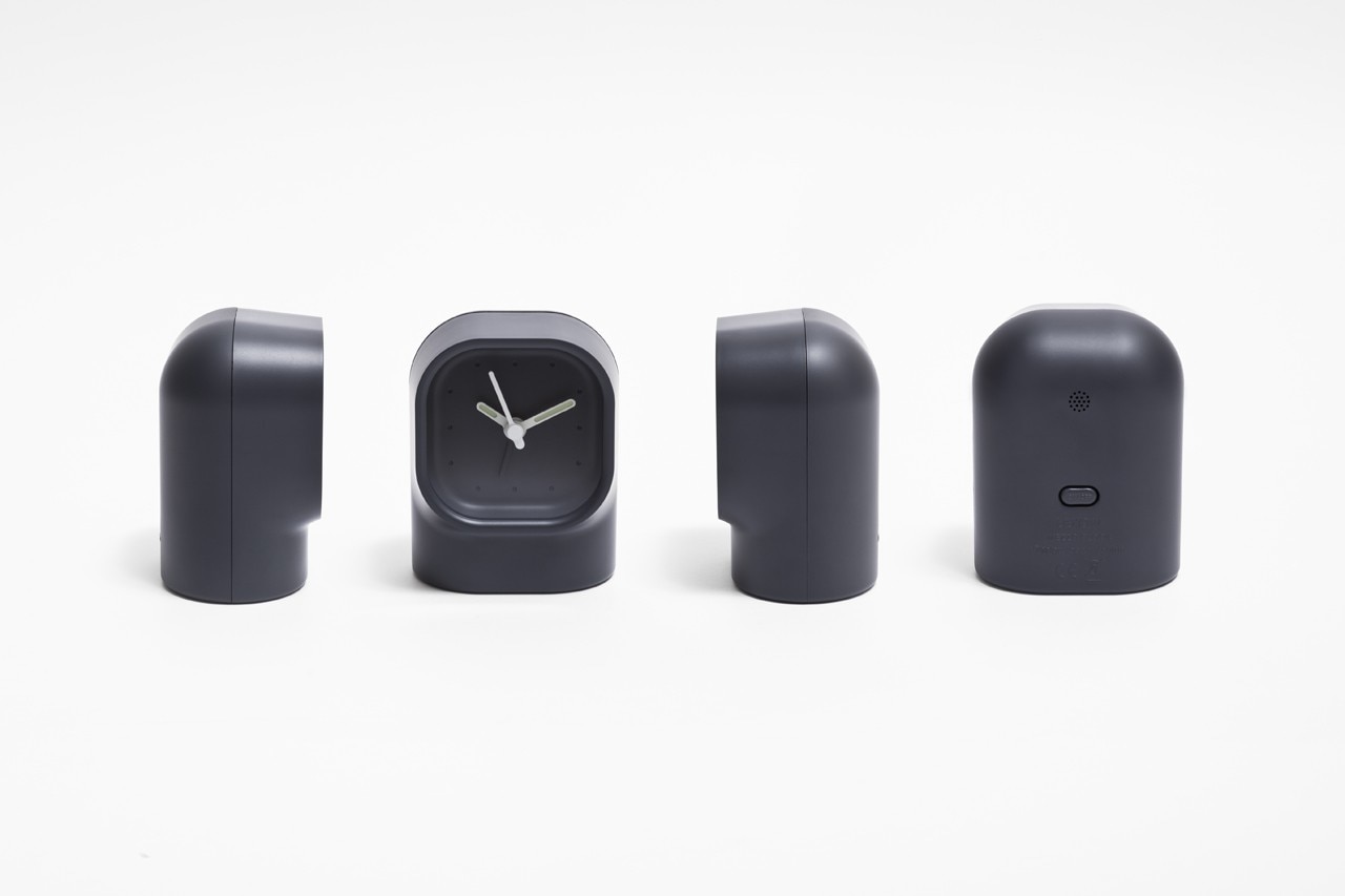Mezzo Clock è una sveglia dalle forme arrotondate. Le lancette luminose indicano l’ora anche al buio, mentre l’allarme può essere spento o ripetuto con un semplice tocco.