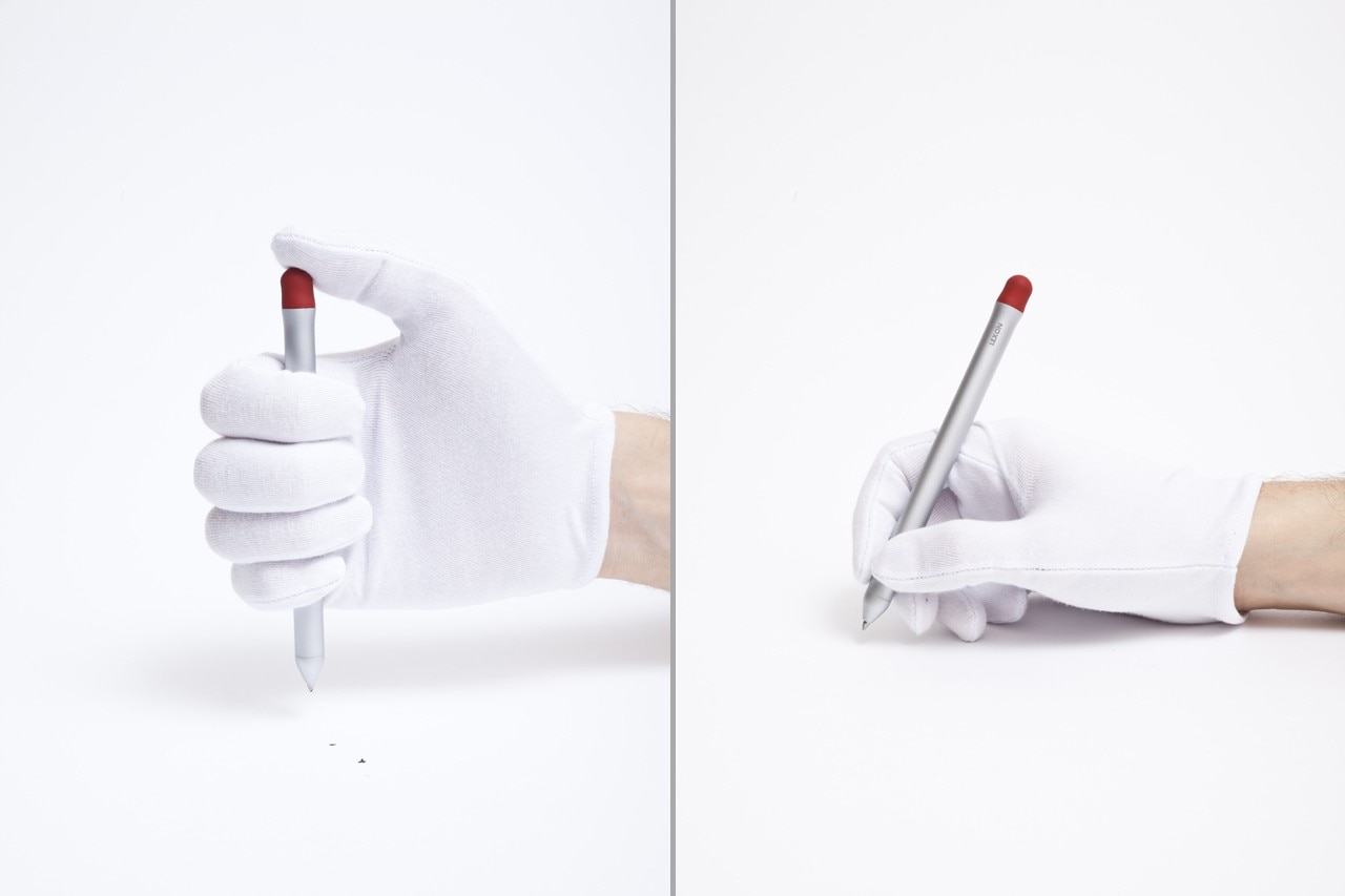 La Reed Pen si caratterizza per la sommità arrotondata e flessibile, simile a una gomma sulla punta di una matita, che permette di estrarre o ritrarre la punta e di utilizzare la penna per sfogliare le pagine su un tablet o un telefono.