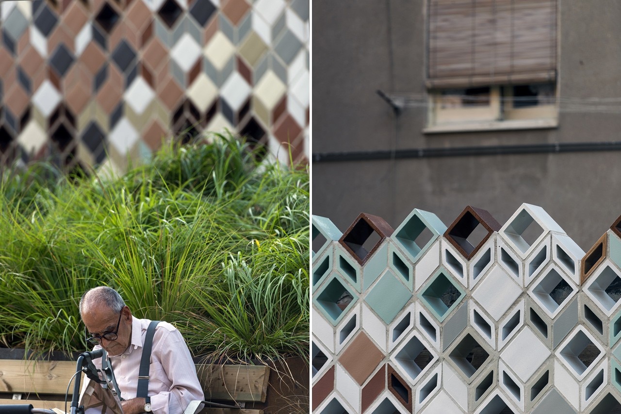 Il progetto risolve una questione urbana attraverso un pattern di piccoli elementi ceramici che disegnano pareti e reticoli. Questo modello, proposto in diverse declinazioni, costituisce una soluzione economica e creativa, che migliora lo spazio pubblico apportando qualità e valore.