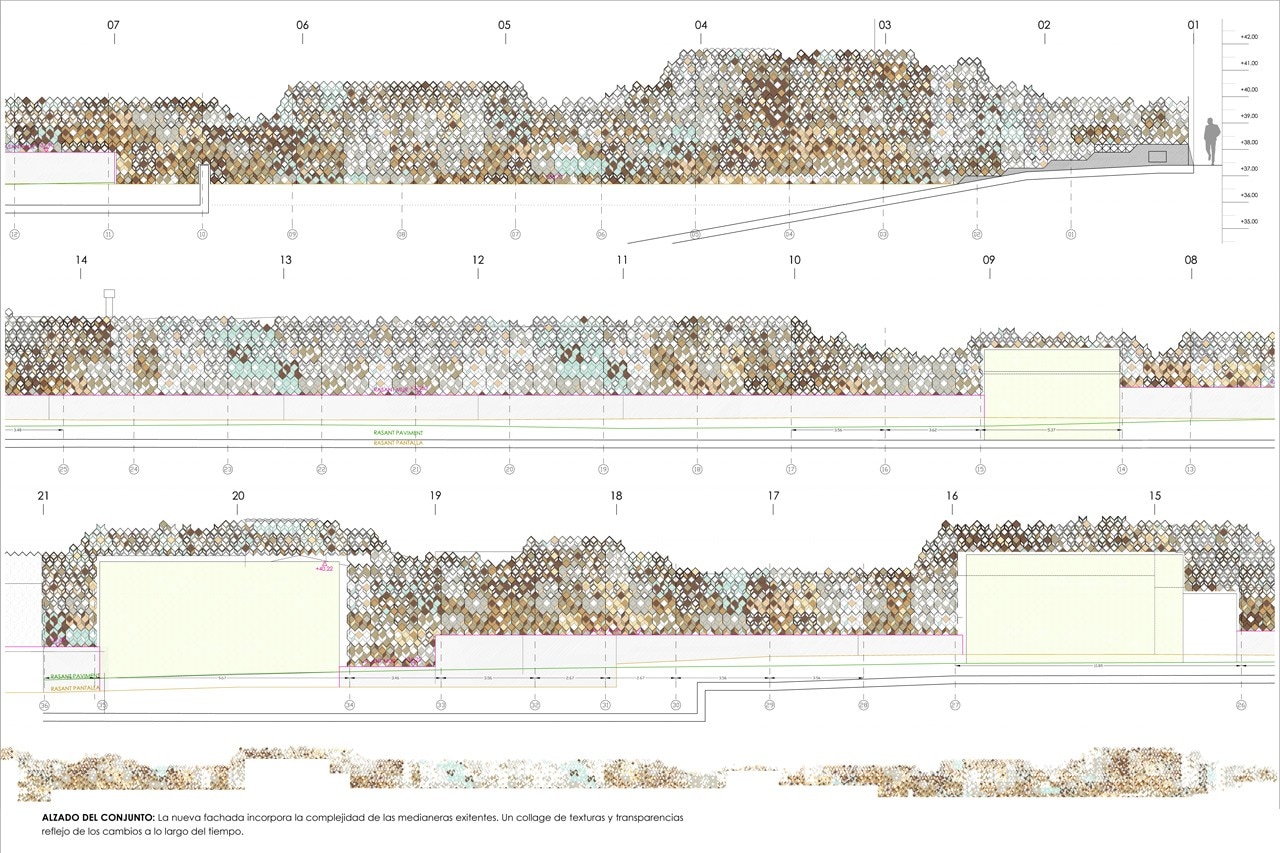 L’intervento interessa una delle zone a più alta densità urbana di Sant Feliu de Llobregat, un distretto operaio di abitazioni modeste sorto intorno alle vecchie fabbriche tessili. Il vuoto lasciato dalla demolizione di queste industrie ha rivelato le facciate posteriori delle abitazioni, che ora disegnano il fronte del nuovo spazio urbano.