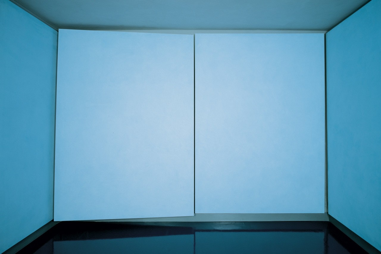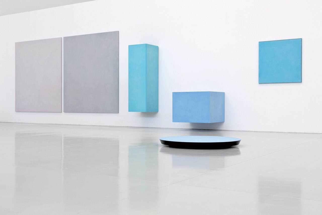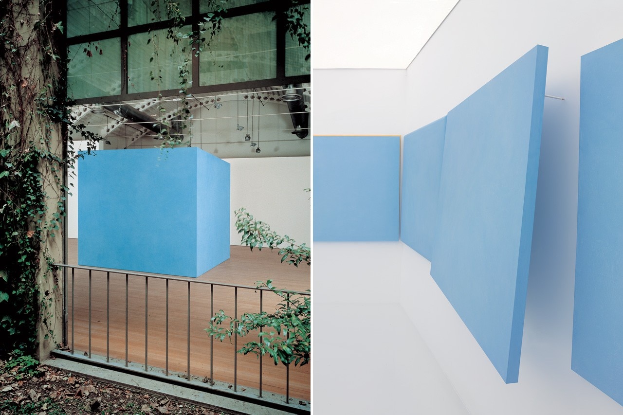 A sinistra: Ettore Spalletti, Scoglio, 1997, Galleria Massimo De Carlo, Milano, 1997, Collezione Setari. Photo: Studio Blu. A destra: Stanza azzurra. Dedicata a mio fratello, che amava gli azzurri, 2006. Photo: Mario Di Paolo