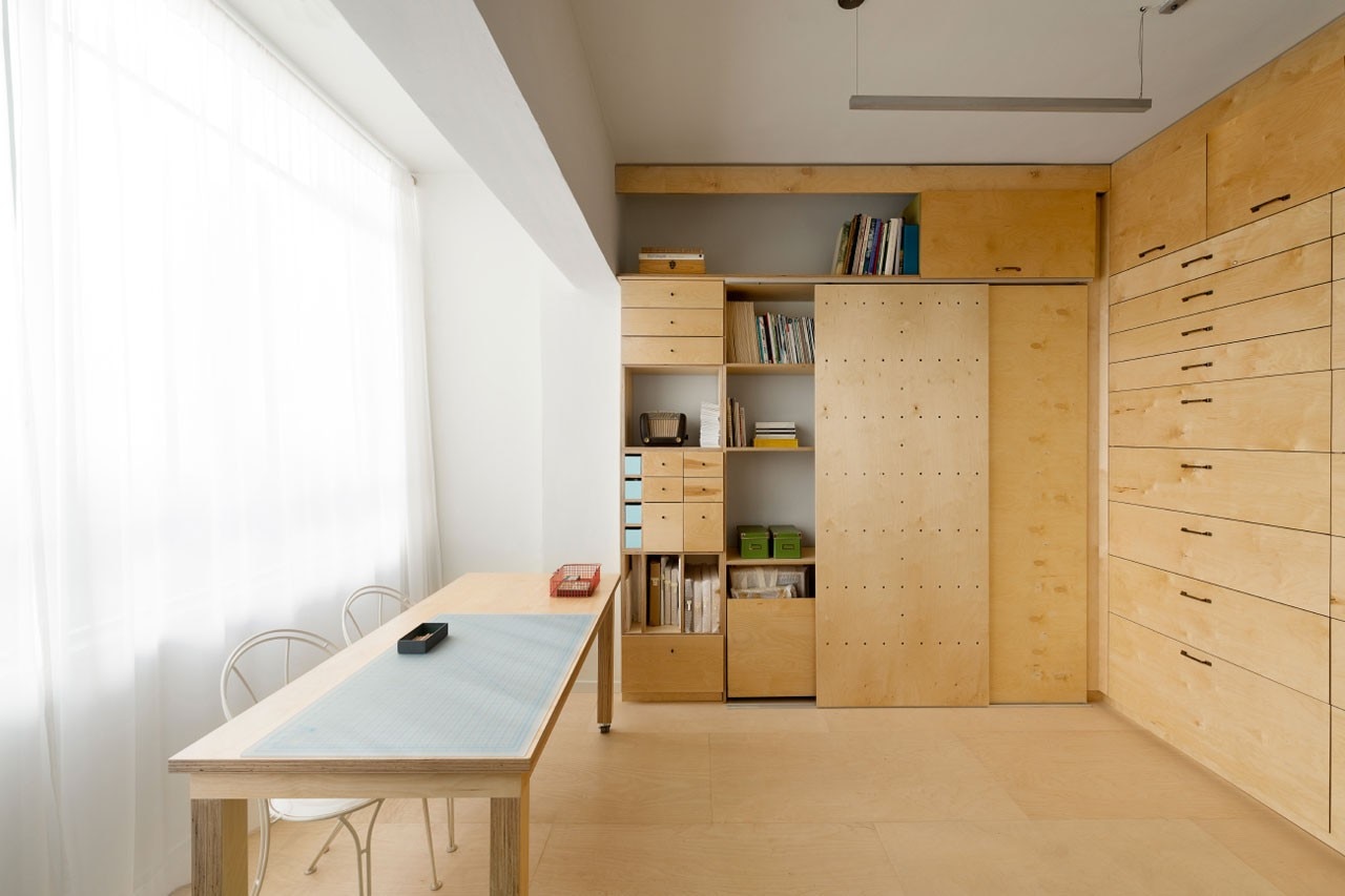 Nell’appartamento di un artista nel centro di Tel Aviv gli architetti Raanan Stern e Shany Tal hanno progettato uno studio multifunzionale di 20 metri quadri.