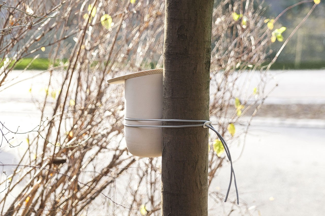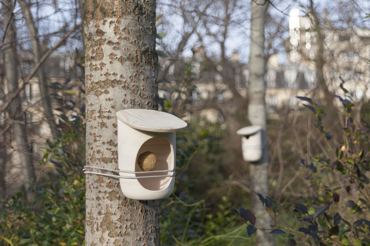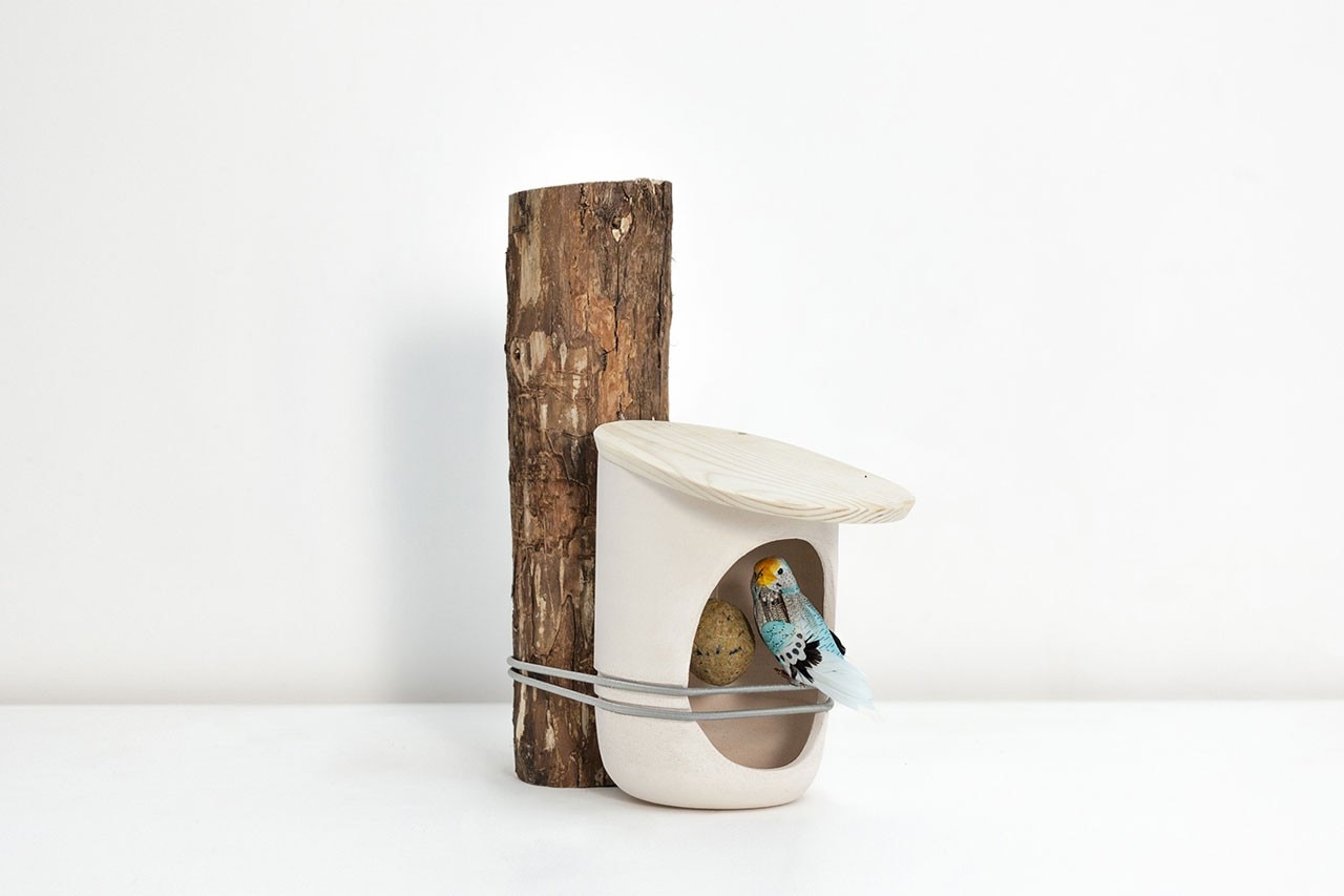 Mikko, progettato da Pygmalion Studio, è una serie di rifugi e mangiatoie per uccelli in legno e ceramica, adattabili a diversi tipi di alberi grazie al sistema di aggancio elastico.