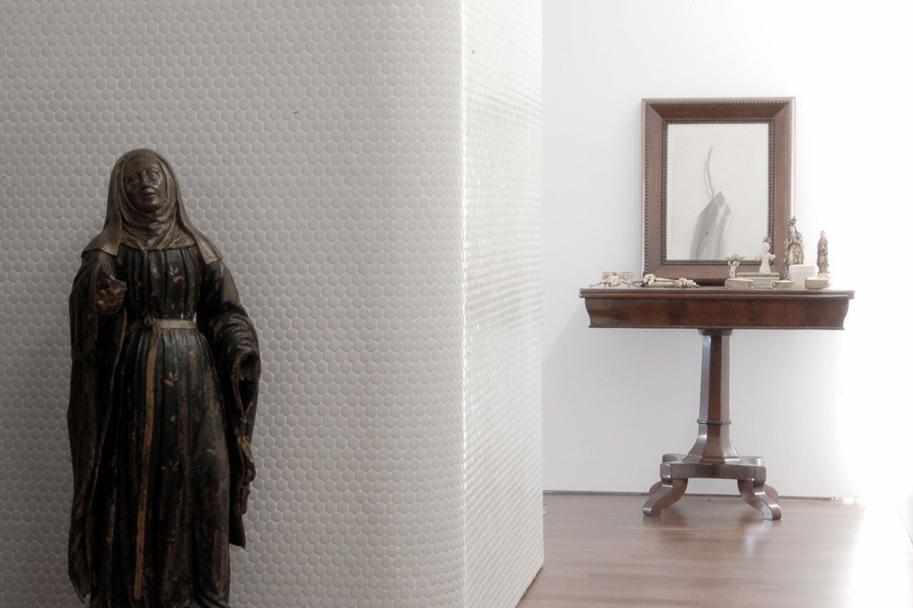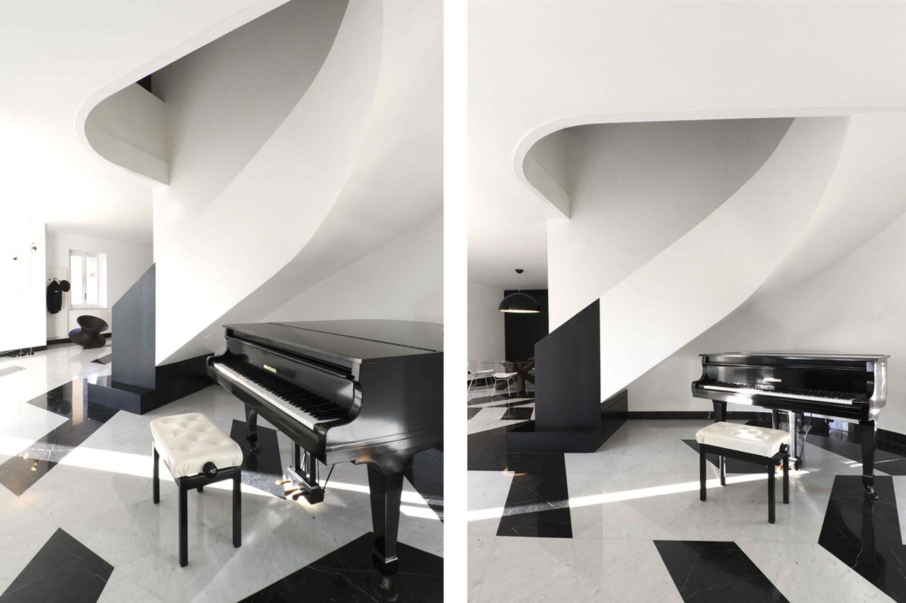 “Italia per interni. Manifesti per la cultura dell’abitare”, SpazioFmgperl’Architettura. In apertura: Simona Ottiere, Interno di una casa nel centro storico di Napoli. Sopra: MONOatelier, Apartment A