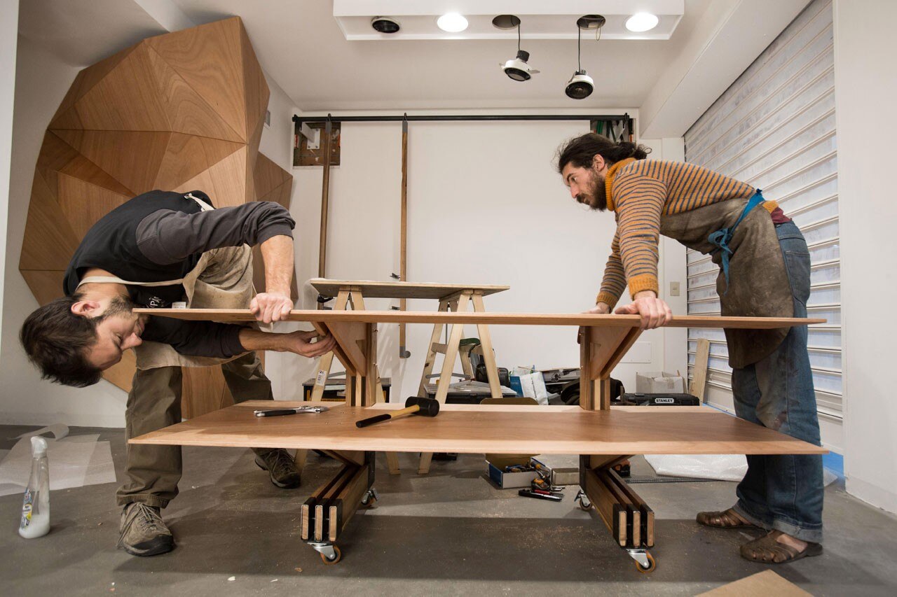Wood-Skin™ è un materiale prodotto dall’omonima società, composta da Gianluca LoPresti, Giulio Masotti, Susanna Todeschini e Stefano Baruffaldi, nata nel 2013 per perseguire studi su geometrie complesse e materiali tecnologici.