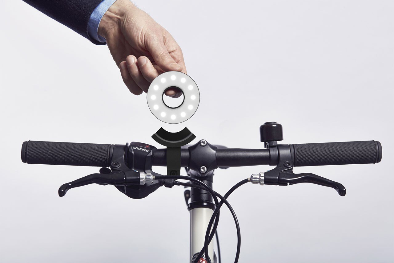 Double O si attacca magneticamente al telaio della biciletta, è facile da montare e smontare e riduce al minimo gli ingombri che potrebbero interferire con il movimento. Si compone di due luci a forma di ‘O’, una bianca per la parte anteriore, una rossa per il retro. Quando non sono utilizzate, le due luci si agganciano magneticamente l’una all’altra proteggendo la superficie LED.