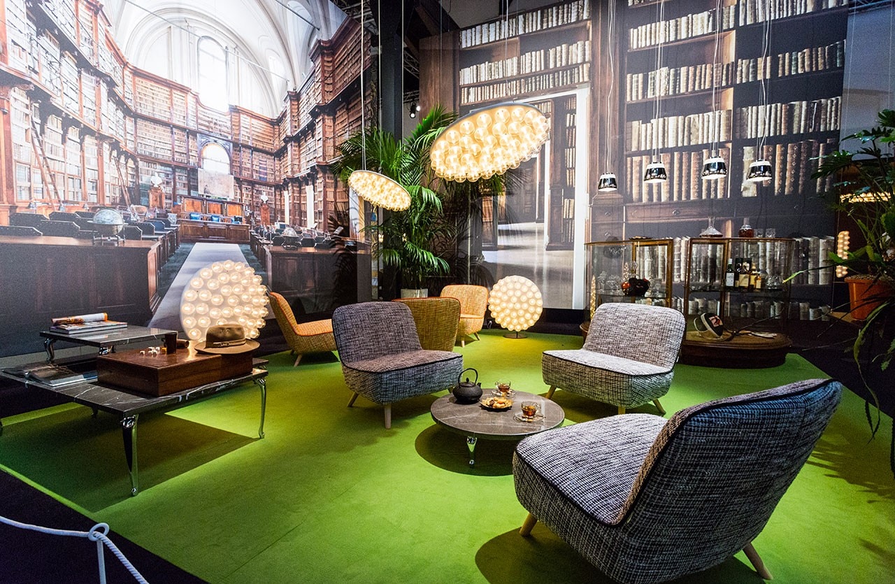 Concepito da Marcel Wanders, art director del brand, l’allestimento si sviluppa in uno spazio di 1700 m2 che continua, per effetto ottico, nelle prospettive di Massimo Listri le cui gigantografie sono appese alle pareti.