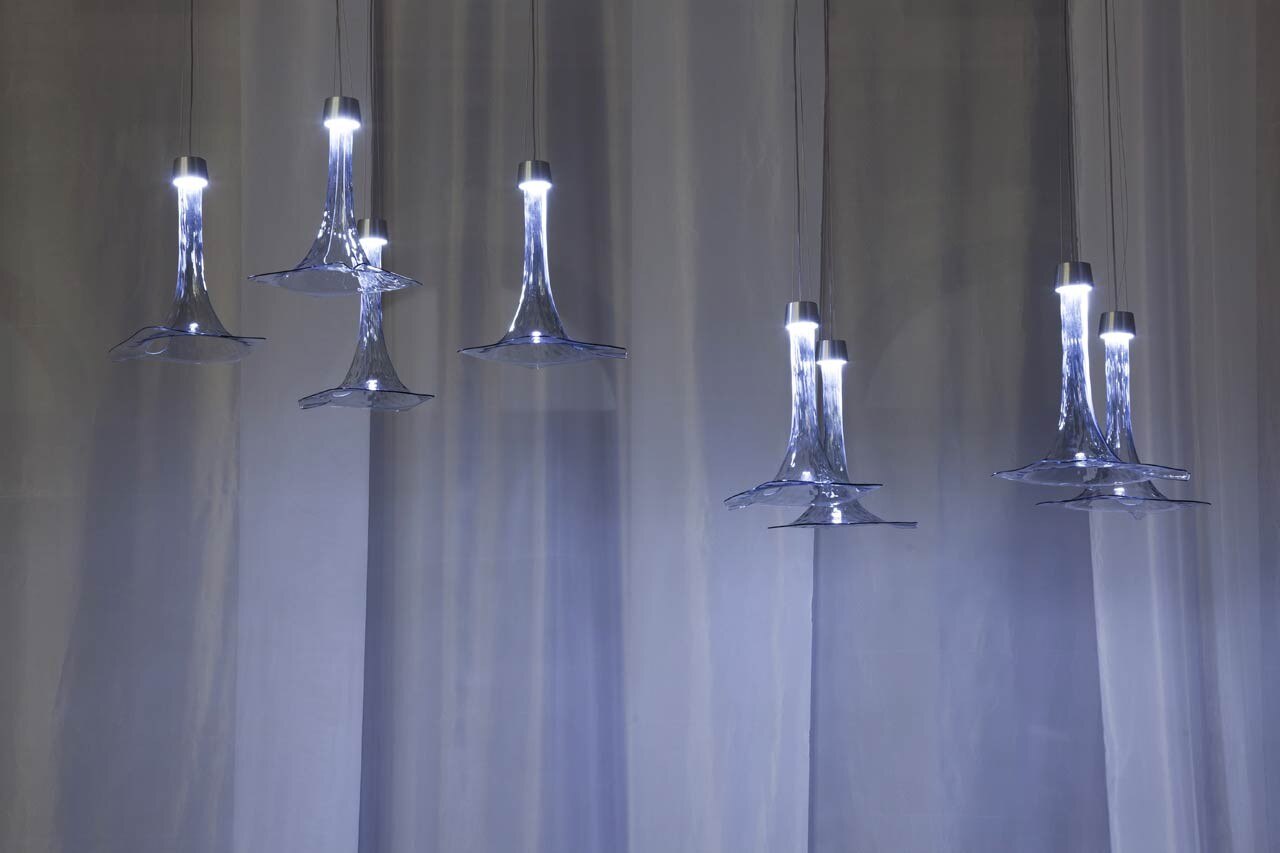 Progetti, come sempre su misura, che uniscono un materiale grezzo e fragile come il vetro, alla tecnologia LED e all’eccellenza della tecnica artigiana: tre fattori che, insieme, rendono contemporanea la tradizione veneziana della lavorazione del vetro. Ogni nuovo progetto è una sfida tecnica unica e sempre nuova di realizzazione.