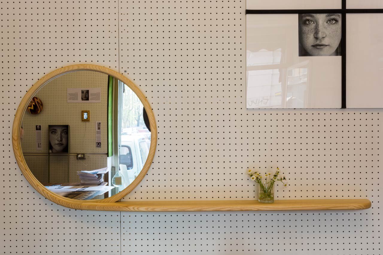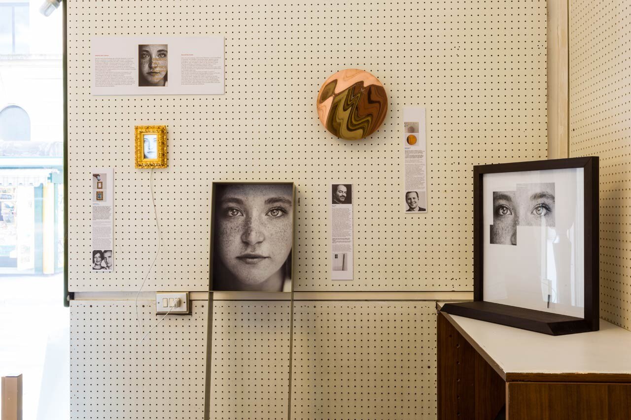 Donata Paruccini, invece, crea una “bolla di sapone” sul muro che ingloba completamente la foto e crea un habitat che la accoglie, mentre Juan Soriano Blanco reinterpreta l’archetipo della medaglia e lo trasforma in specchio e ancora Leonardo Talarico crea un oggetto fortemente essenziale: due semplici listelli che hanno la funzione di bloccare la fotografia e invece sembrano tagliarla.