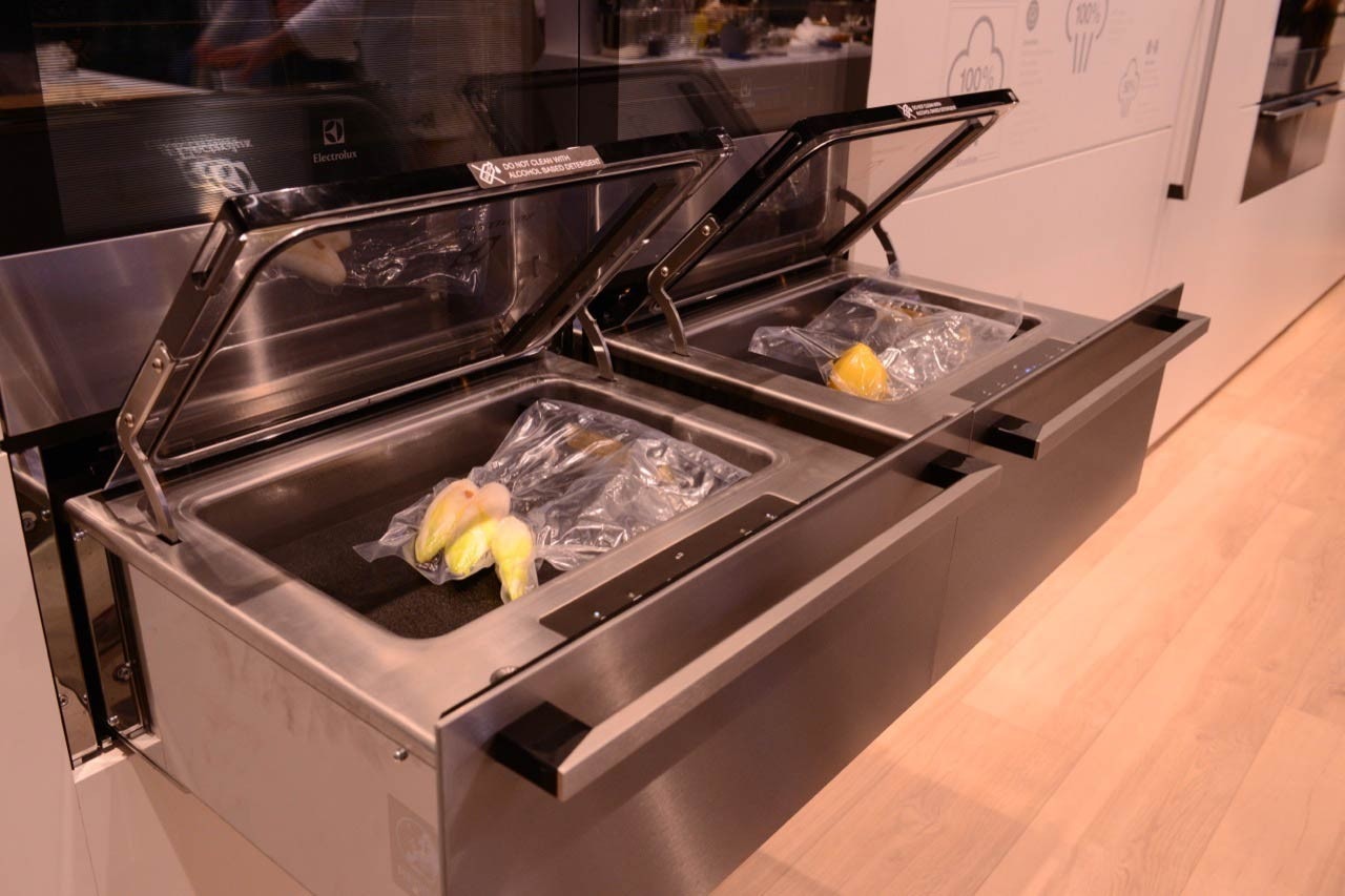 Tra i nuovi prodotti presentati, il cassetto SousVide da incasso e il forno a vapore CombiSteam per una versione domestica del sottovuoto. Tecnica di cottura professionale, la cottura sottovuoto offre numerosi vantaggi: mettere sottovuoto alcuni ingredienti, abbinando per esempio pesce e carne con marinature o erbe aromatiche, mescolandone gli aromi in modo che sprigionino tutto il loro sapore una volta che vengano successivamente cotti al vapore a temperature molto basse, comprese tra 54 e 80°C a seconda della ricetta.
