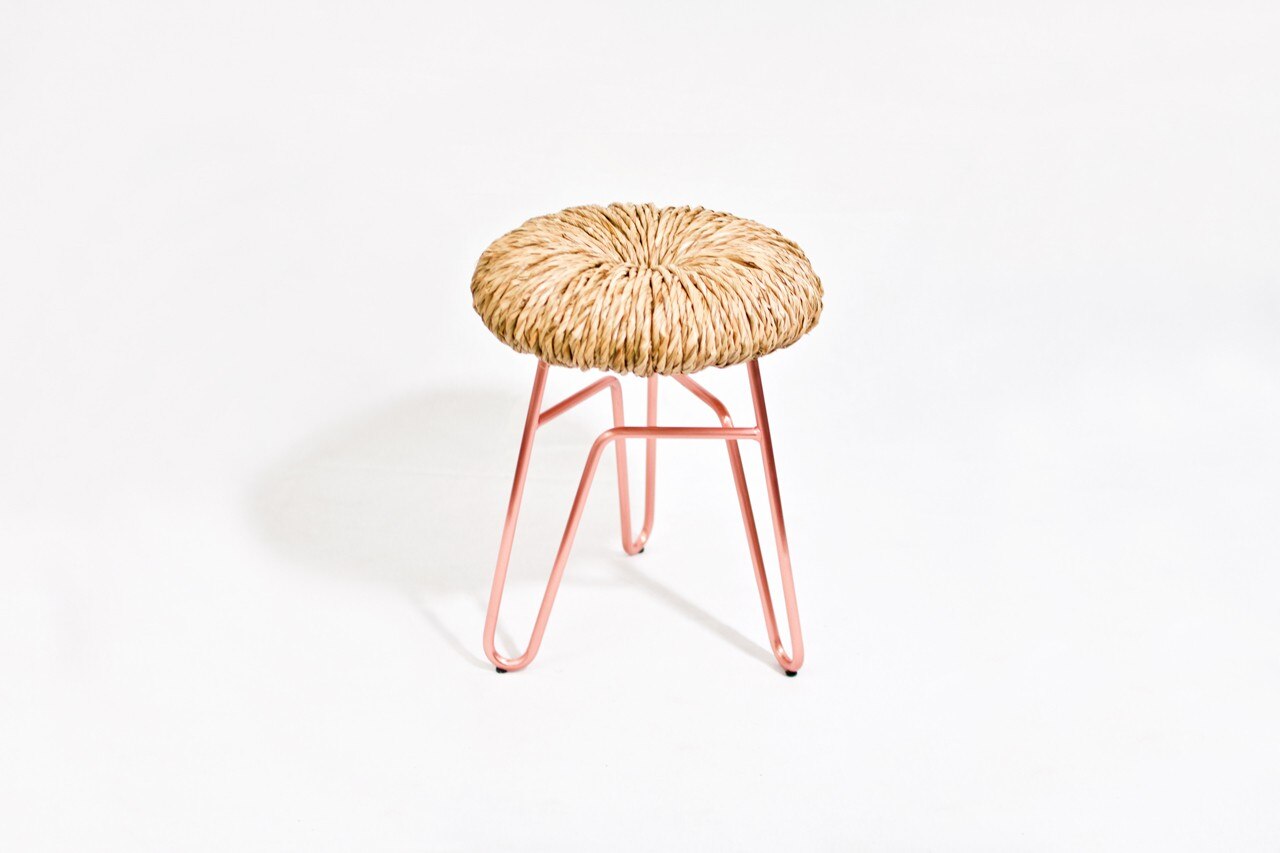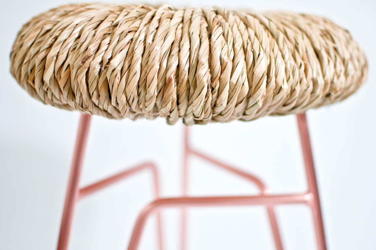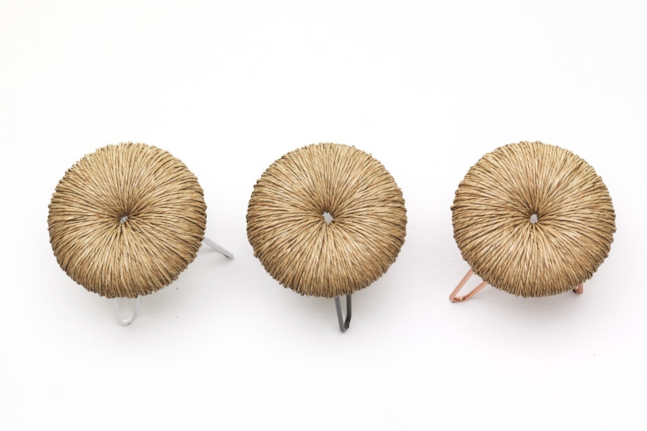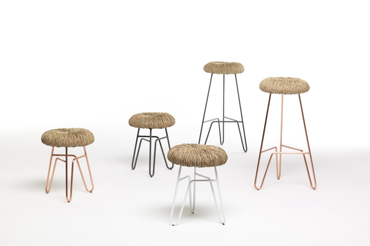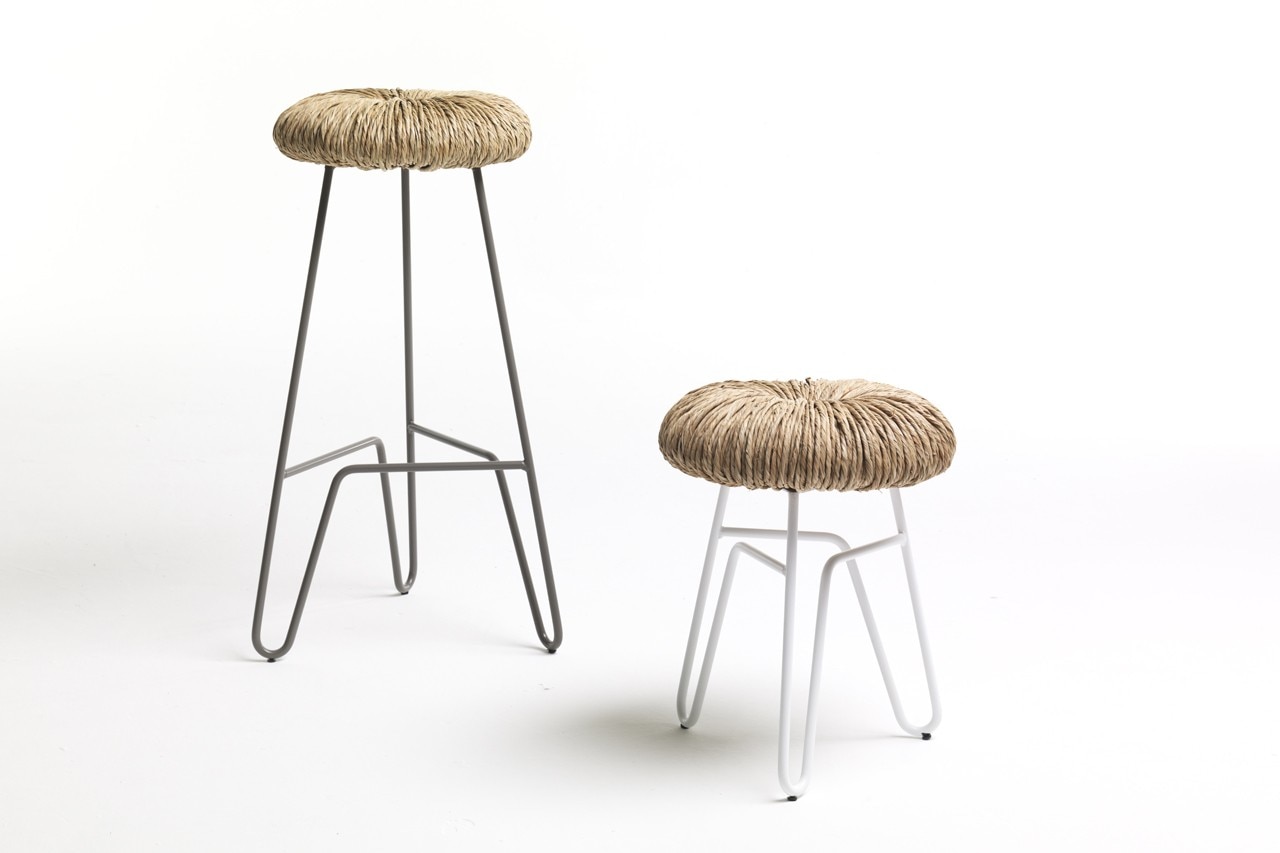 La giovane designer milanese Alessandra Baldereschi ha disegnato per MOGG la collezione di sgabelli Donut, impagliati con erba lacustre.
