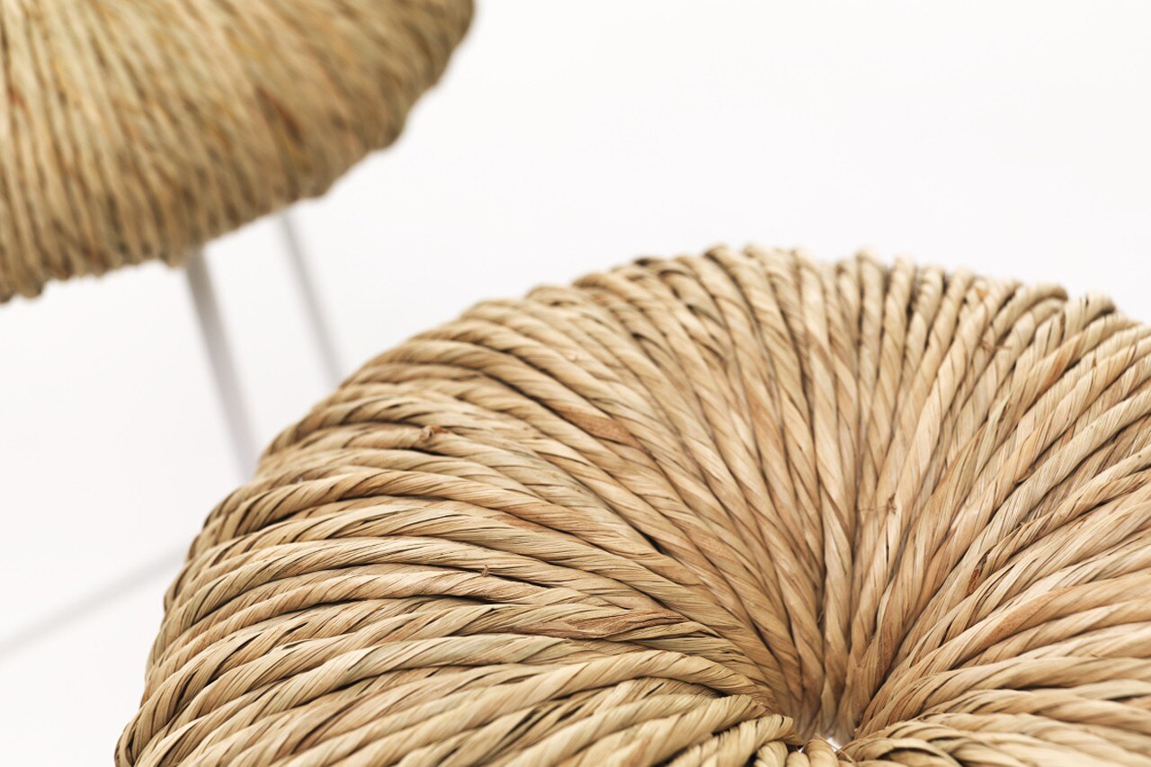 La collezione di sgabelli Donut, disegnata da Alessandra Baldereschi per MOGG, mantiene viva quest’arte, sostenendo la tradizione dei nostri antenati. L’intreccio con la paglia viene interpretato in chiave contemporanea: la corda in fibra naturale è arrotolata su una base imbottita in modo da ottenere una comoda seduta.