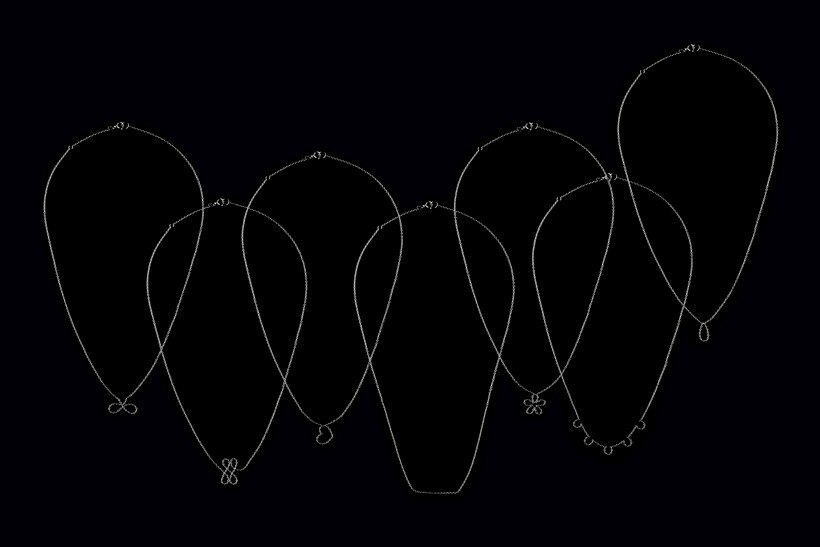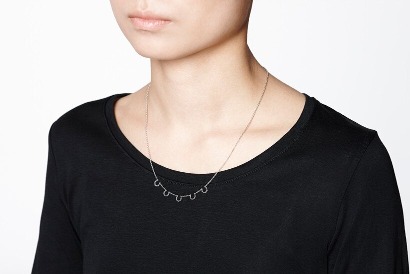 La collezione si compone di sette modelli di collane e cinque set di orecchini, ciascuno disponibile in oro bianco o giallo. I pezzi sembrano essere stati disegnati a mano, in un colpo solo, da cui il nome della collezione Single-stroke.