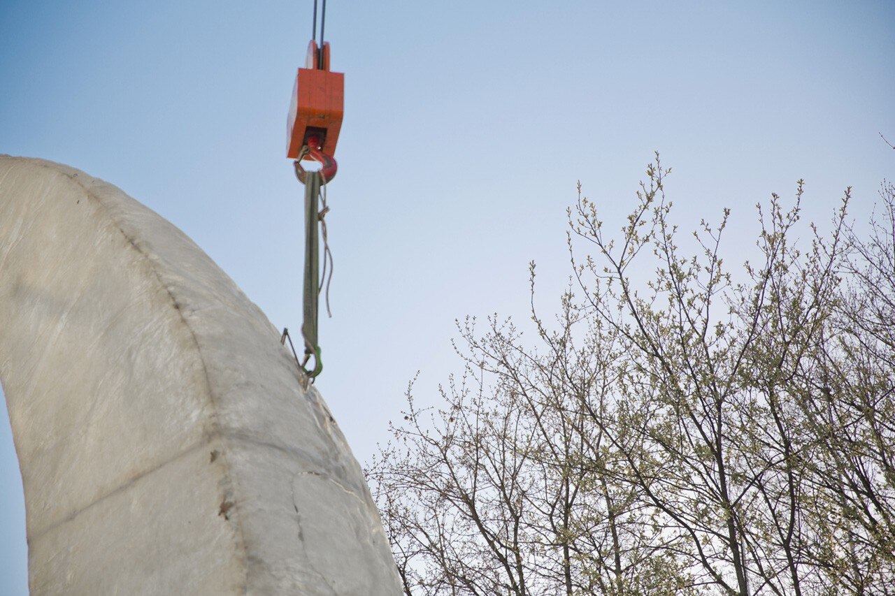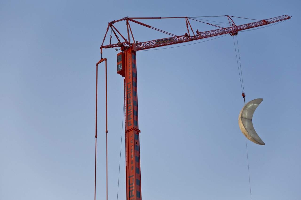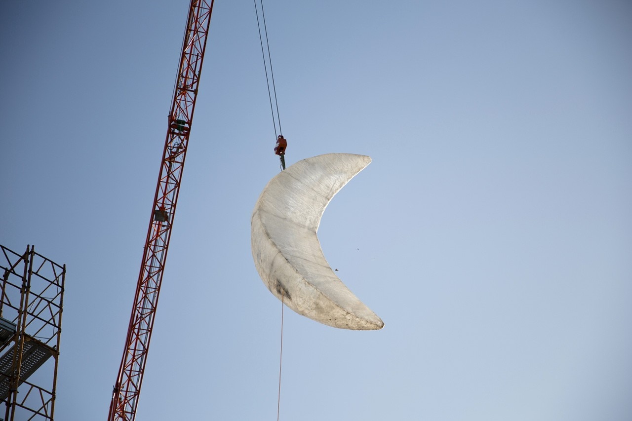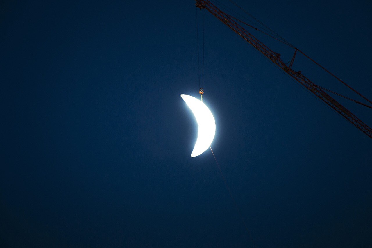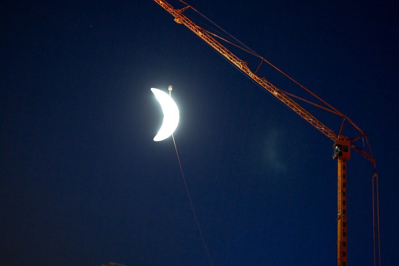 Moon è rimasta appesa a una gru per sette giorni nel mese di aprile, durante i quali veniva accesa solo la notte.