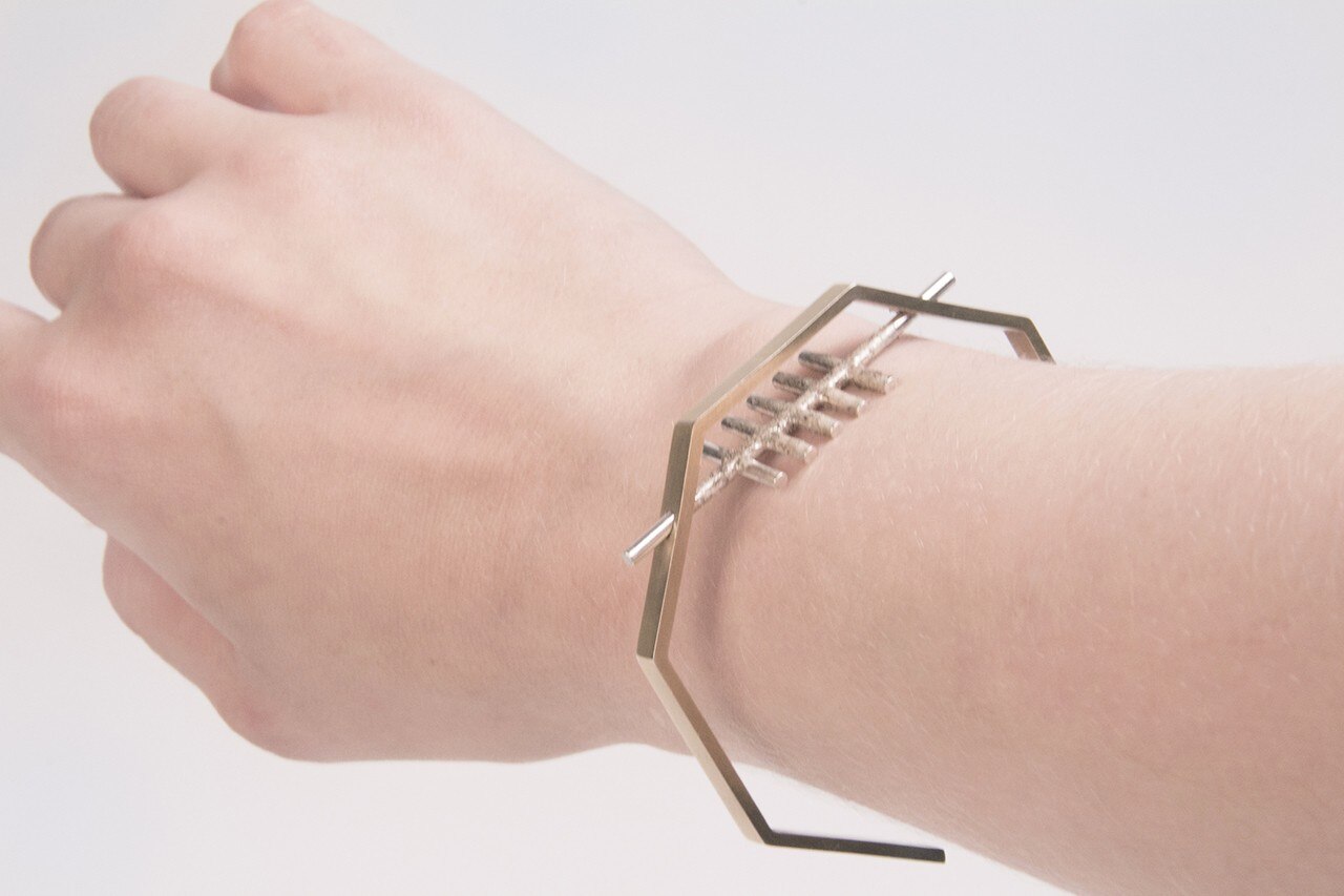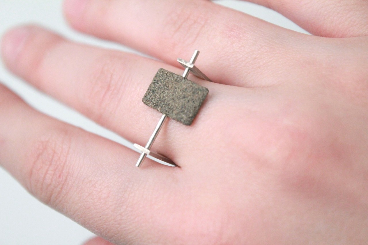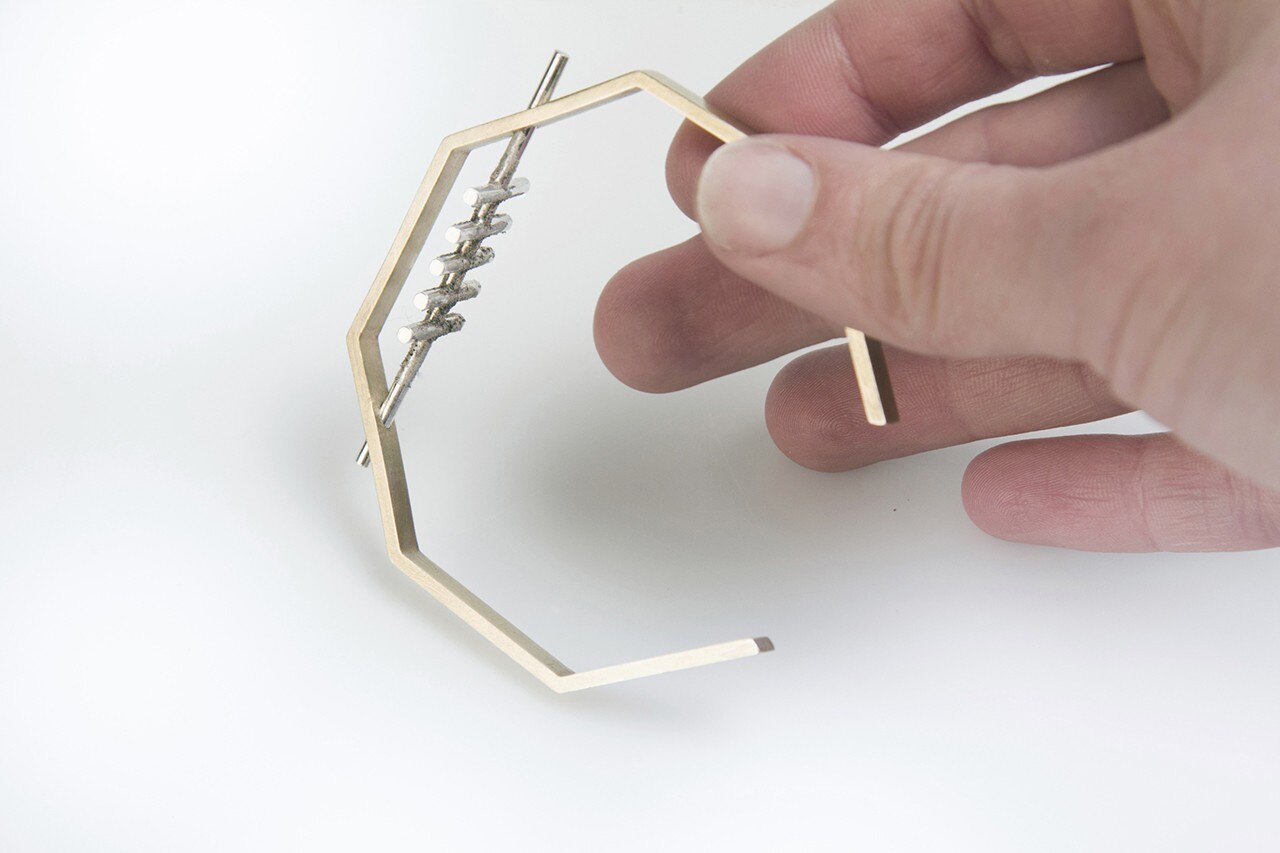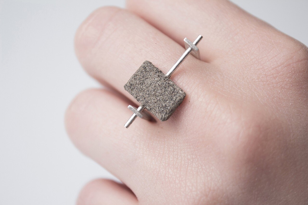 La forma dei gioielli Dust deriva da queste fattorie abbandonate: la polvere viene valorizzata usando un adesivo biodegradabile, che la trasforma in un rivestimento per gli anelli e i bracciali. Con il tempo tale rivestimento si degrada rivelando la struttura sottostante, una sorta di scheletro artificiale: una celebrazione della fragile bellezza che il tempo e l’uso conferiscono ai materiali.