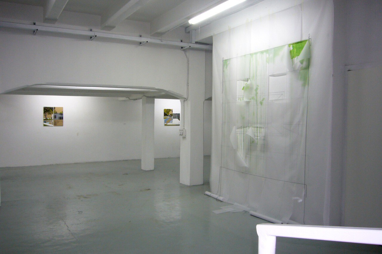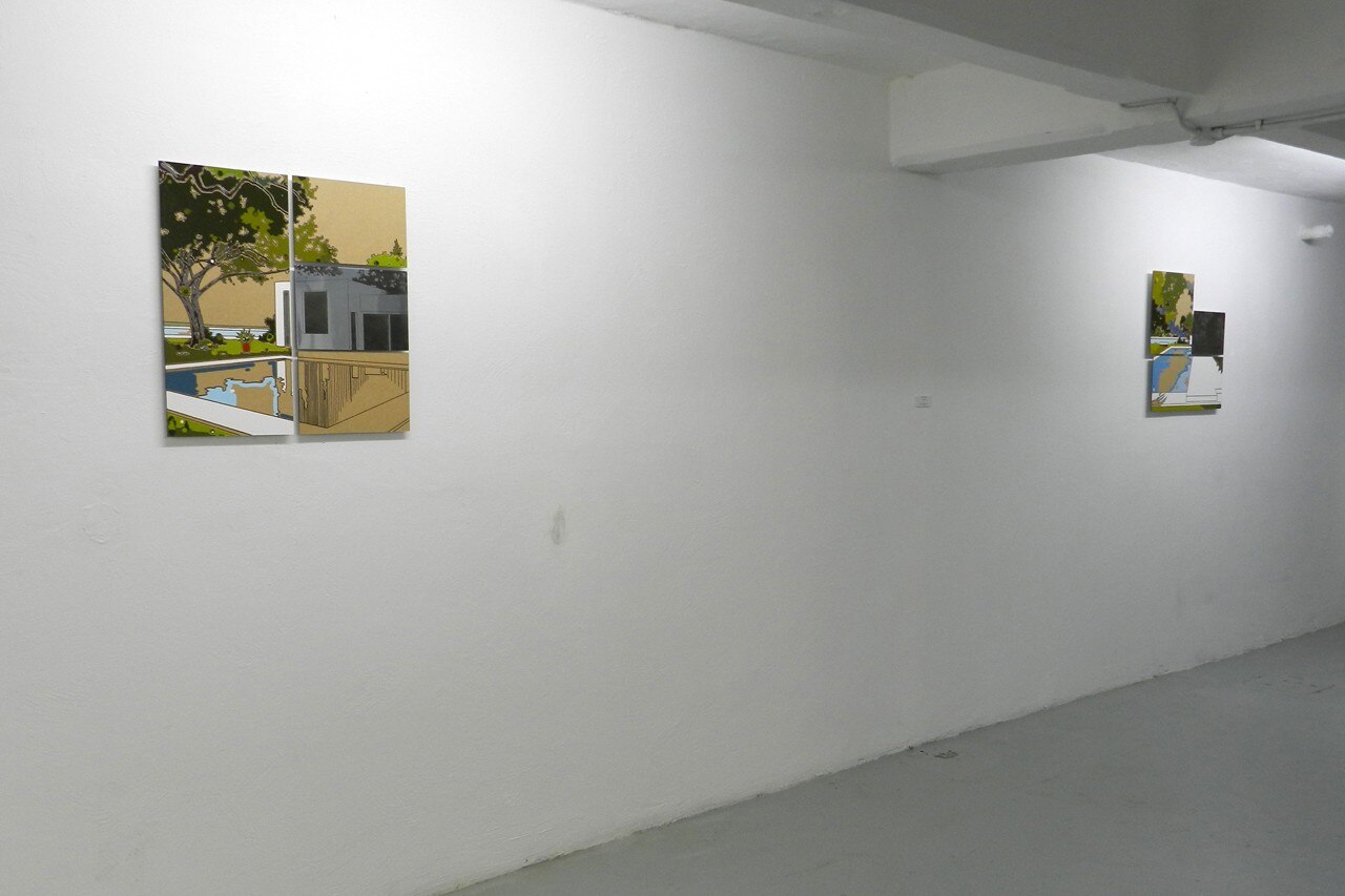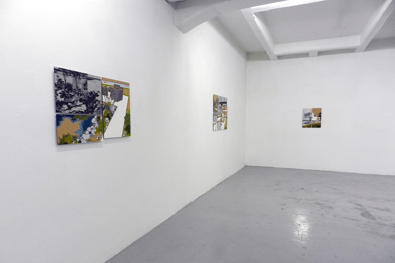 In apertura: Guido Bagini, Technogreen #002, 2014, smalto su cartone e zinco lucidato su dibond, 56x112 cm (dettaglio). Sopra: Guido Bagini, “Vita segreta delle piante”, vista dell'allestimento