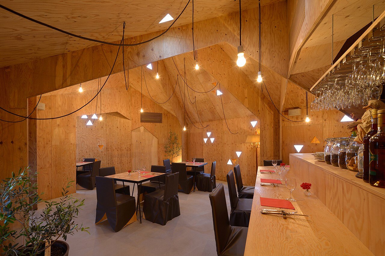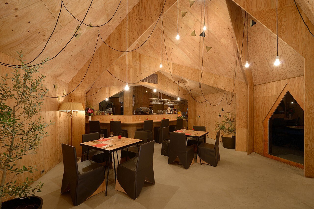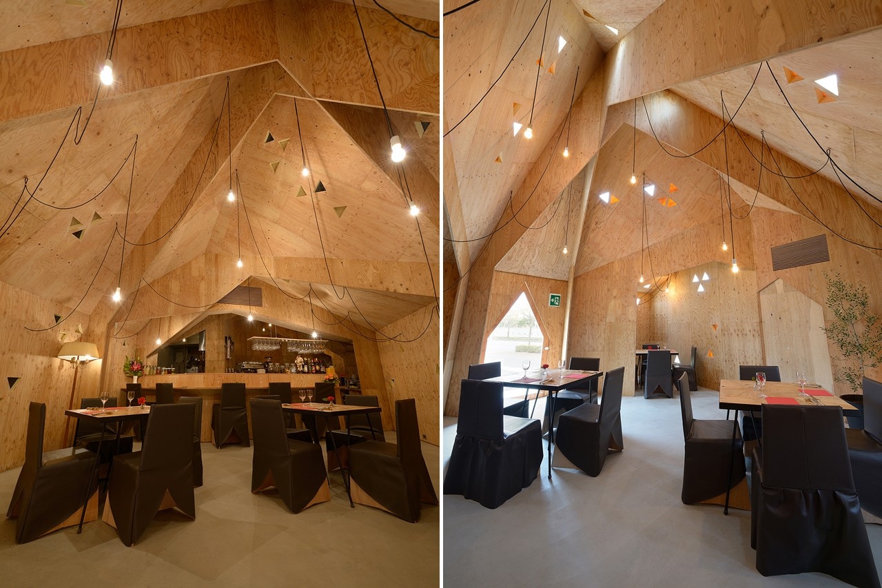 Gli architetti hanno cercato di progettare un ristorante iconico che costituisse una novità per il contesto realizzando una forma inedita.