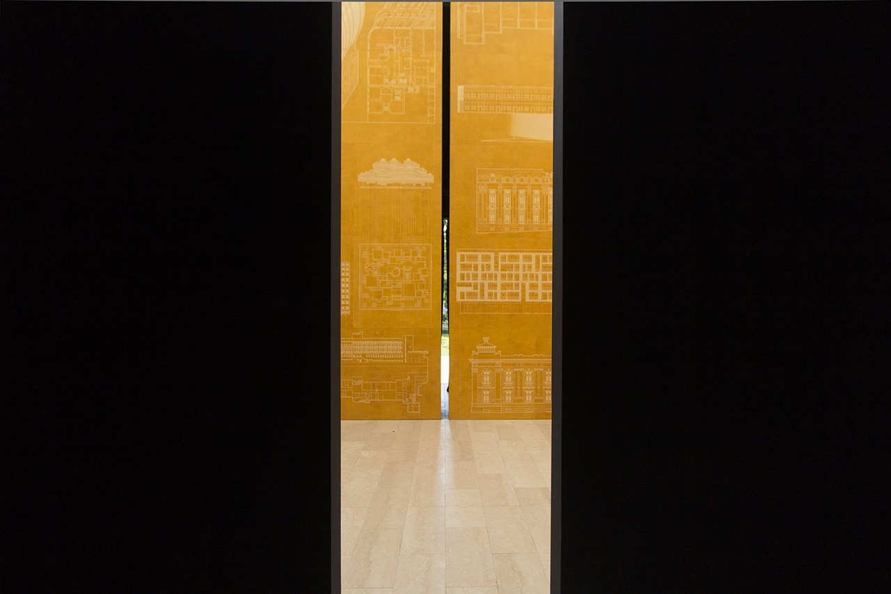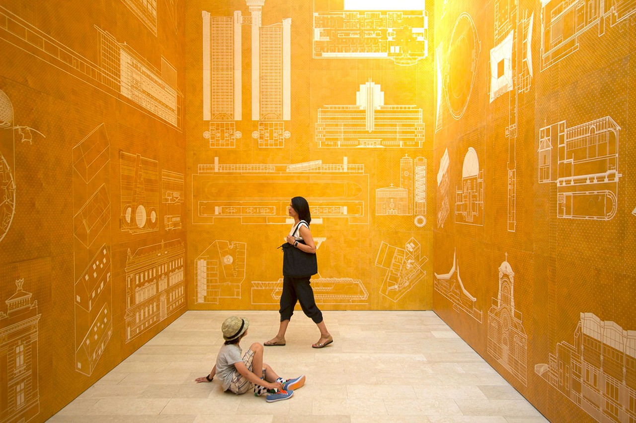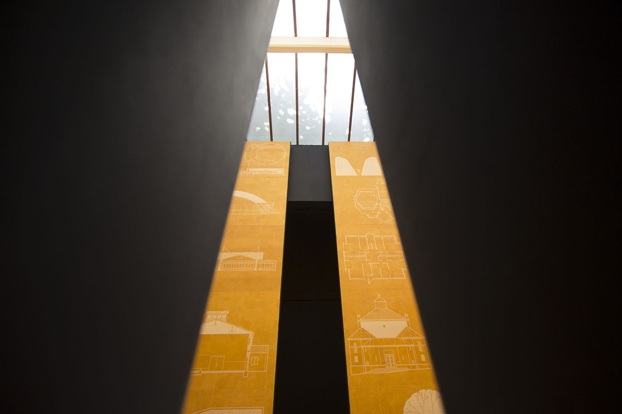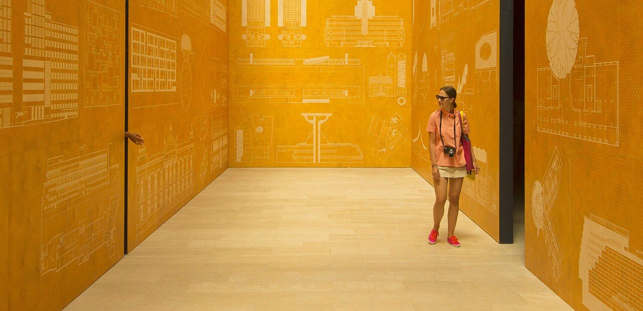 Ognuna delle cinque sezioni di parete della sala centrale ospita un elemento, che si distingue e definisce le opere in questione. I cinque elementi fondamentali scelti sono: la colonna, la parete, le aperture, i collegamenti verticali e il tetto. L'ordine scelto rompe con la cronologia e orbita intorno allo spettatore sfidandolo a individuare specifico e simile, vernacolare e internazionale, ordinario e straordinario.