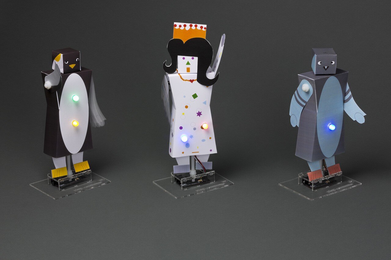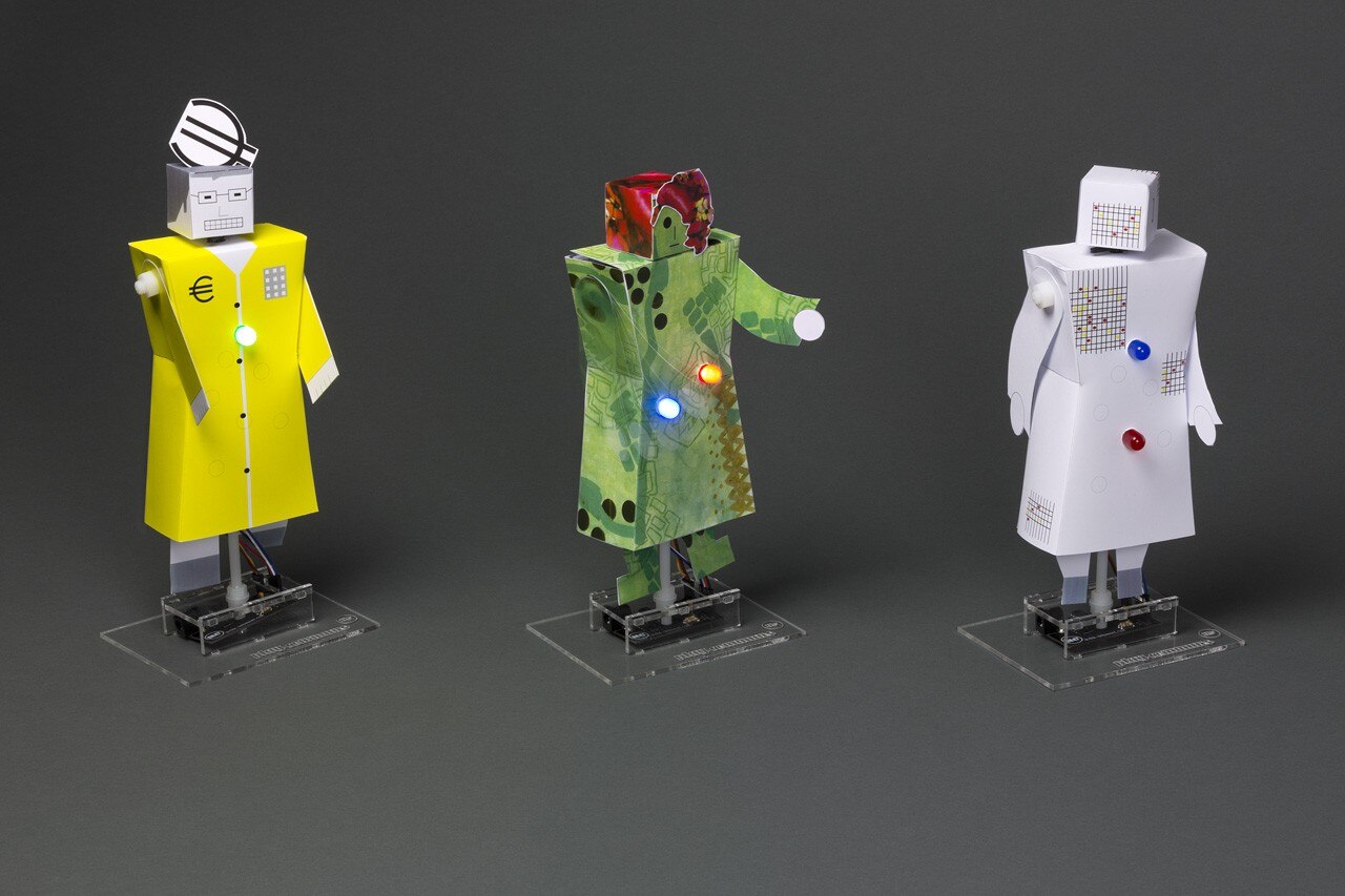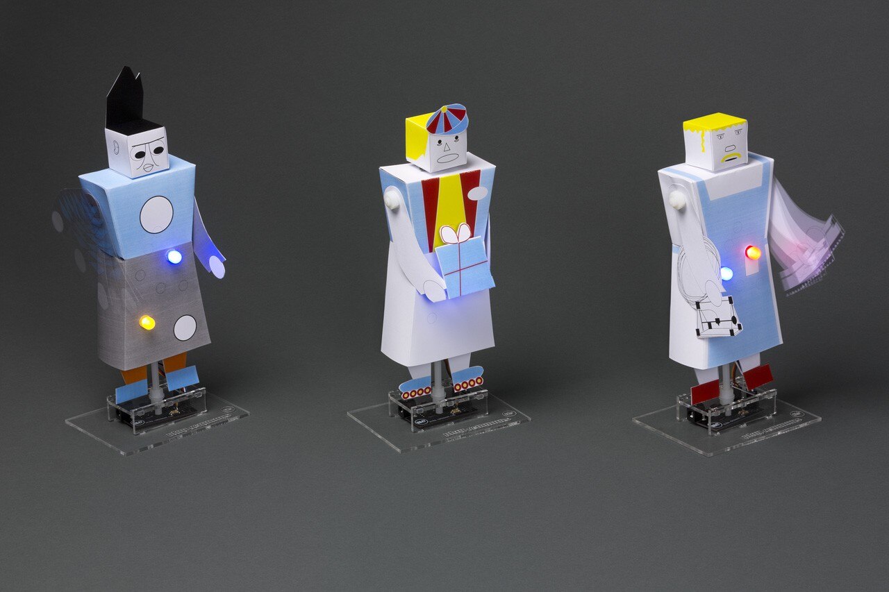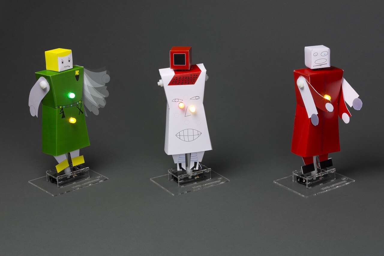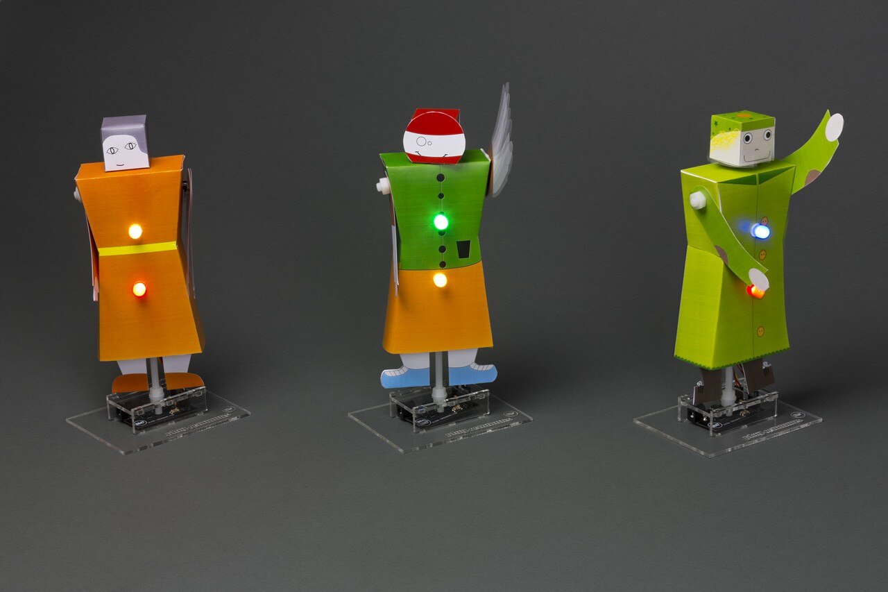 Pochi componenti elettronici – led colorati e servomotori – fanno muovere e girare la testa, il corpo e le braccia dei personaggi, ognuno in grado di esprimere una diversa personalità e soluzioni fuori dagli schemi. A stimolare la fantasia e la creatività, le figure dei robot sono pensate per essere modificate, migliorate e inventate dai bambini.