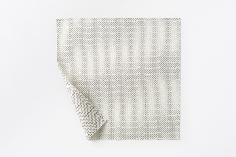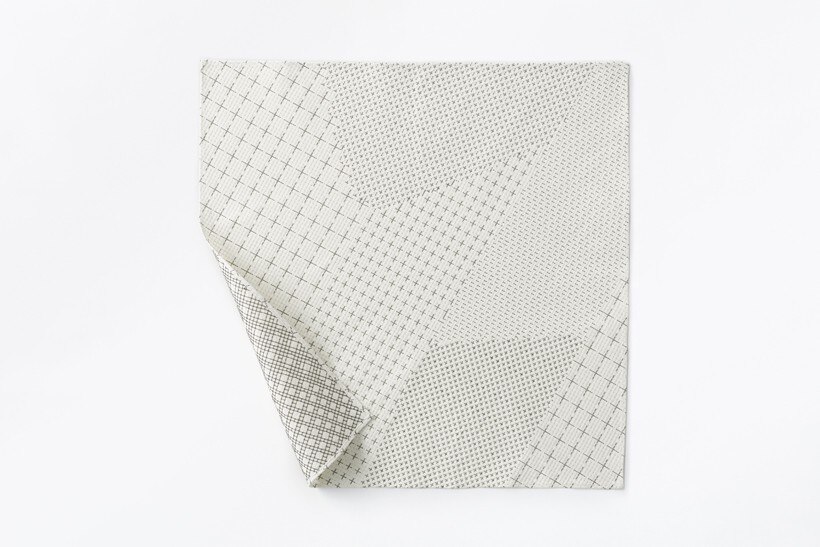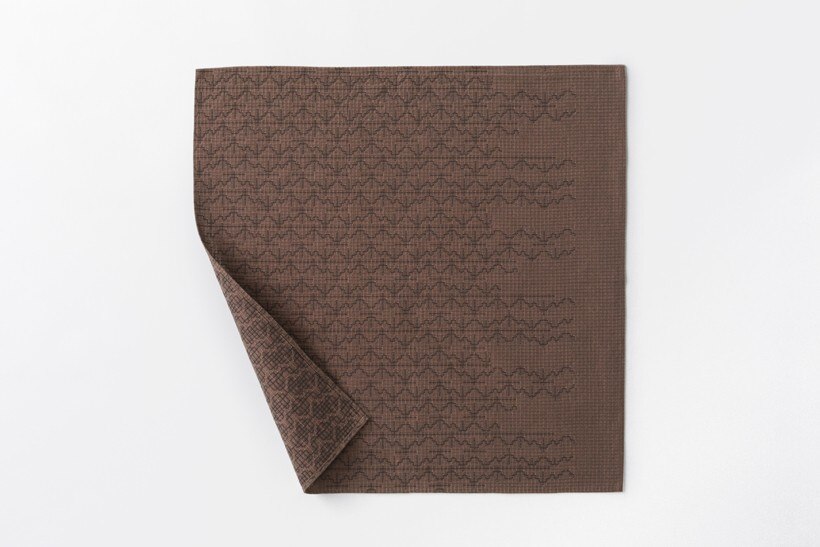 Nendo ha deciso di lavorare con un aspetto della produzione dell’impresa completamente diverso e di solito trascurato: i panni che Hosoo usa per avvolgere le sue preziose sete preziose. Sviluppando un nuovo modello basato sulla tecnica del telo sashiko-ori, in cui il tessuto imita ricamo, Nendo ha cercato di introdurre un nuovo pubblico al mondo tradizionalmente esclusivo del Nishijin.