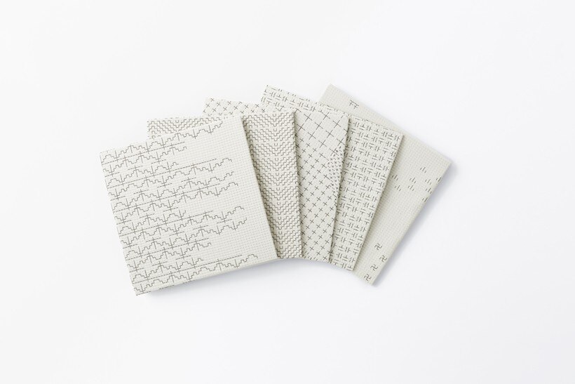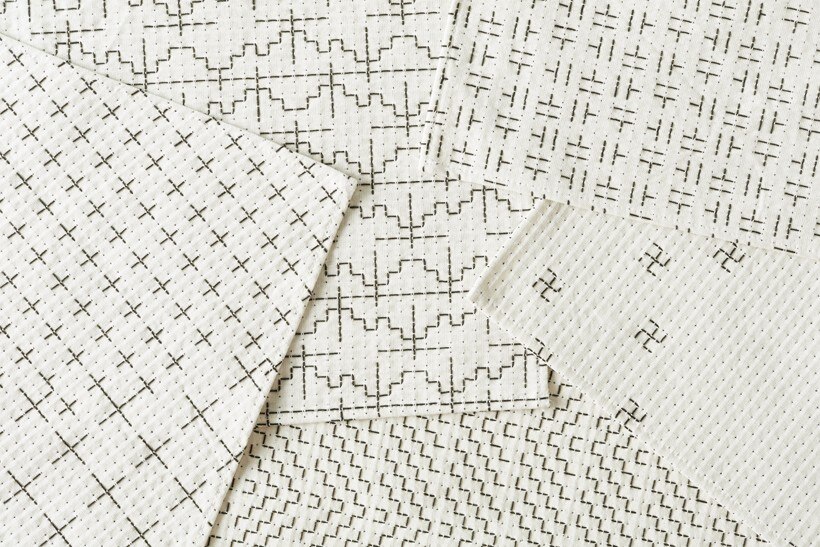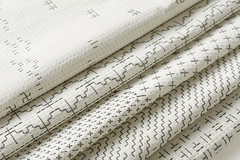Nendo ha collaborato con la tessitura di Kyoto Hosooper il nuovi disegni tessili di “by | n”, basati sulla tecnica tradizionale sashiko-ori, in cui il tessuto imita il ricamo.