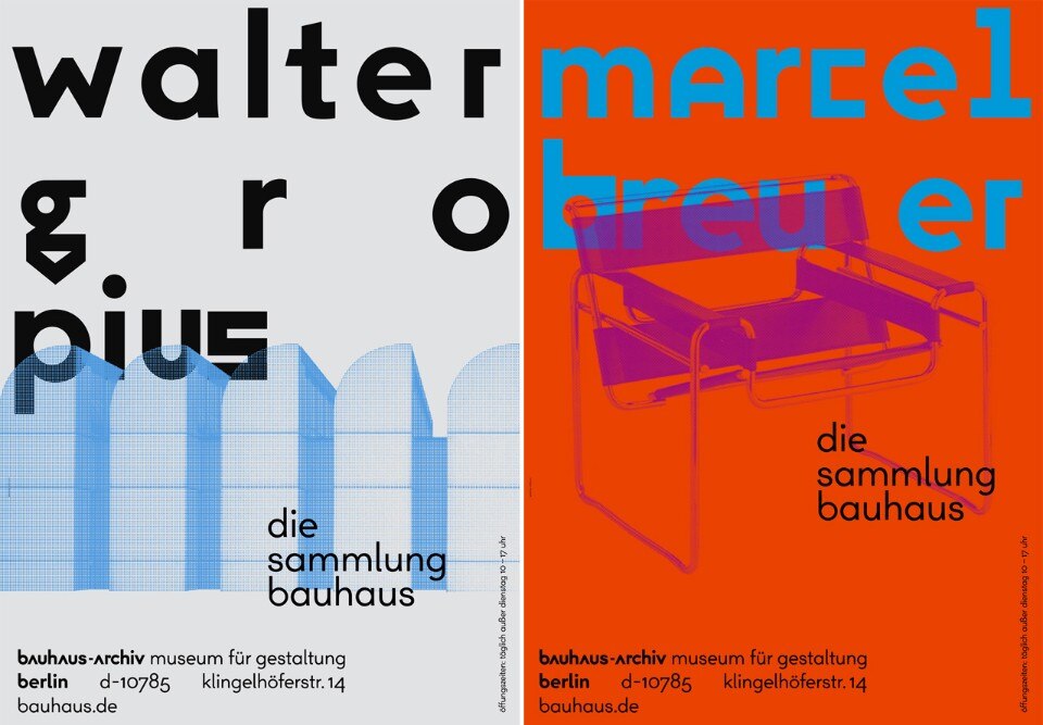 La nuova immagine coordinata può essere vista su manifesti affissi in tutta Berlino che rappresentano la famosa sedia in tubolare di acciaio di Marcel Breuer, l’infusore per il te di Marianne Brandt, le fotografie del “Balletto triadico” di Oskar Schlemmer e il caratteristico edificio del Bauhaus-Archiv – opera tarda del fondatore del Bauhaus Walter Gropius. Queste opere sono tutte parte della “Bauhaus Collection: Classic Modern Originals” visitabile al Bauhaus-Archiv.
