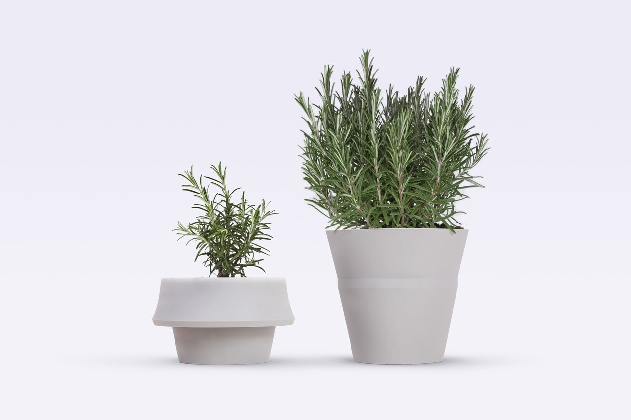 La terra può essere aggiunta durante la crescita della pianta, fornendo lo spazio necessario per la crescita delle radici. L'uso di silicone flessibile permette al portavasi di tener conto delle modifiche della pianta e, in un certo senso, crescere insieme ad essa.
