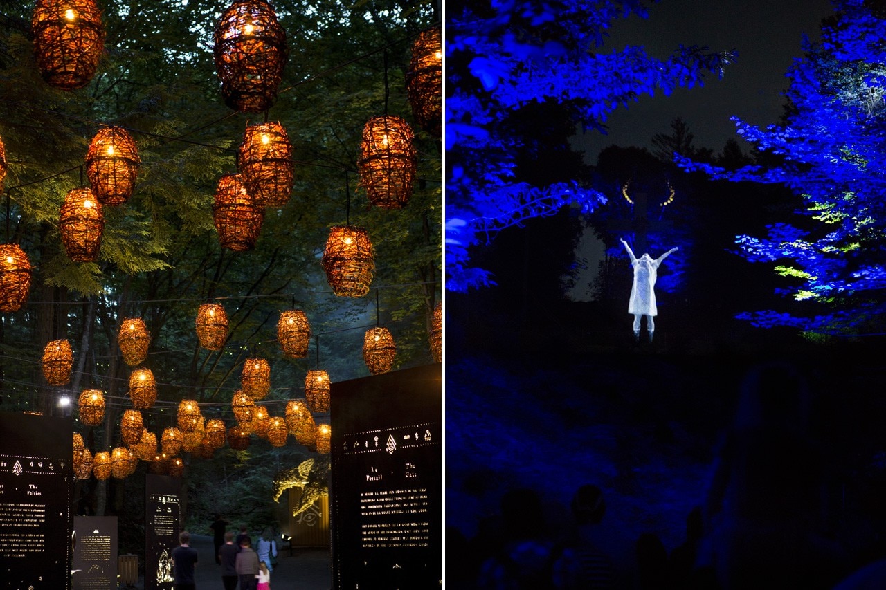 Moment Factory ha creato Foresta Lumina, un percorso notturno illuminato nel Parc de la Gorge de Coaticook ispirato dai leggendari personaggi che popolano le storie popolari.