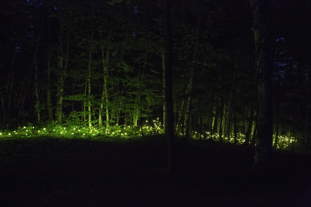 Il bosco non ha nessuna fonte di inqunamento luminoso: questo ha permesso di lavorare con effetti di luce più finemente calibrati. L’apparato tecnico è stato progettato per essere utilizzato estate dopo estate.