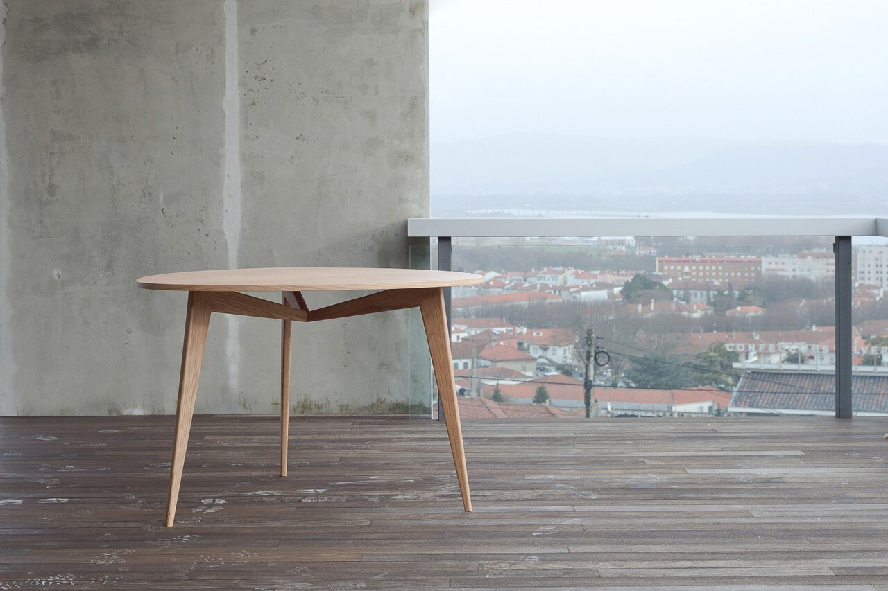 Fa parte della collezione Mima, un tavolo da pranzo a tre gambe. Il design elegante e minimalista di questo tavolo crea un senso di leggerezza e semplicità, nonostatnte sia robusto e stabile. Sulla parte superiore del tavolo una leggera curva disegna un cuore, percepibile ancora più grande nell’ombra proiettata.