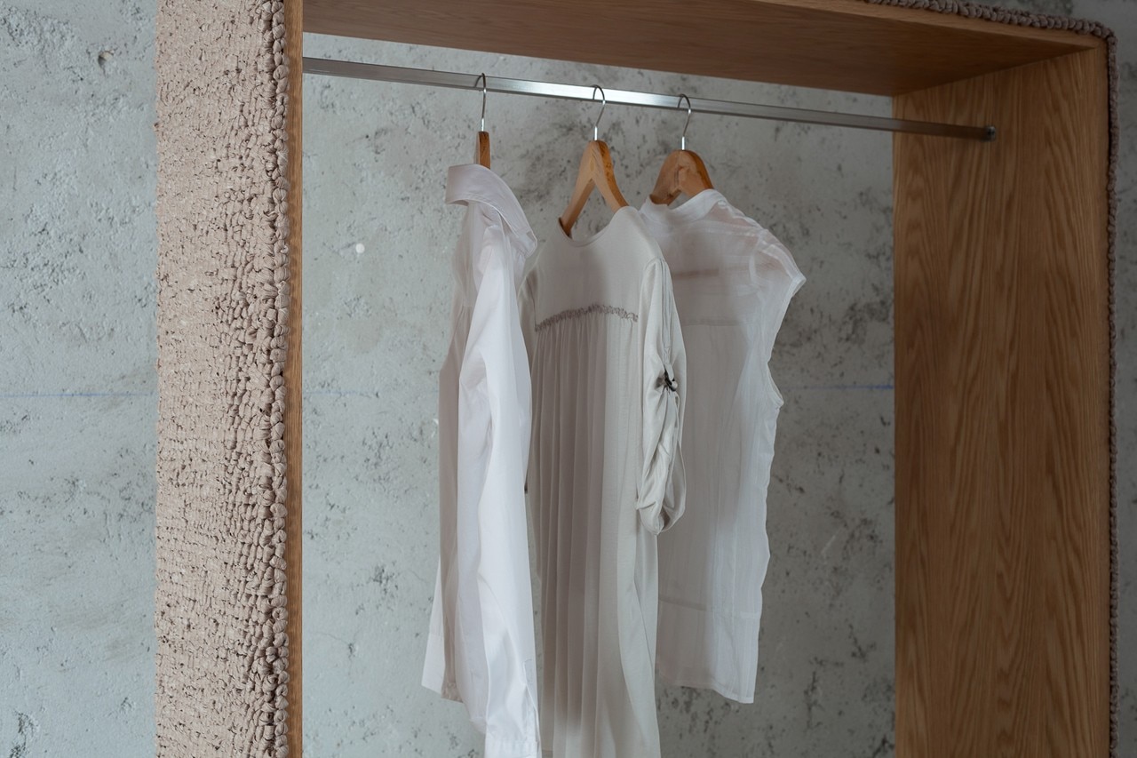 I materiali tradizionali sono combinati e rielaborati in forme raffinate e stilizzate, mentre l’oscillazione tra valori contrapposti – affilato e soffice, caldo e freddo, duro e morbido – cattura l’attenzione.
