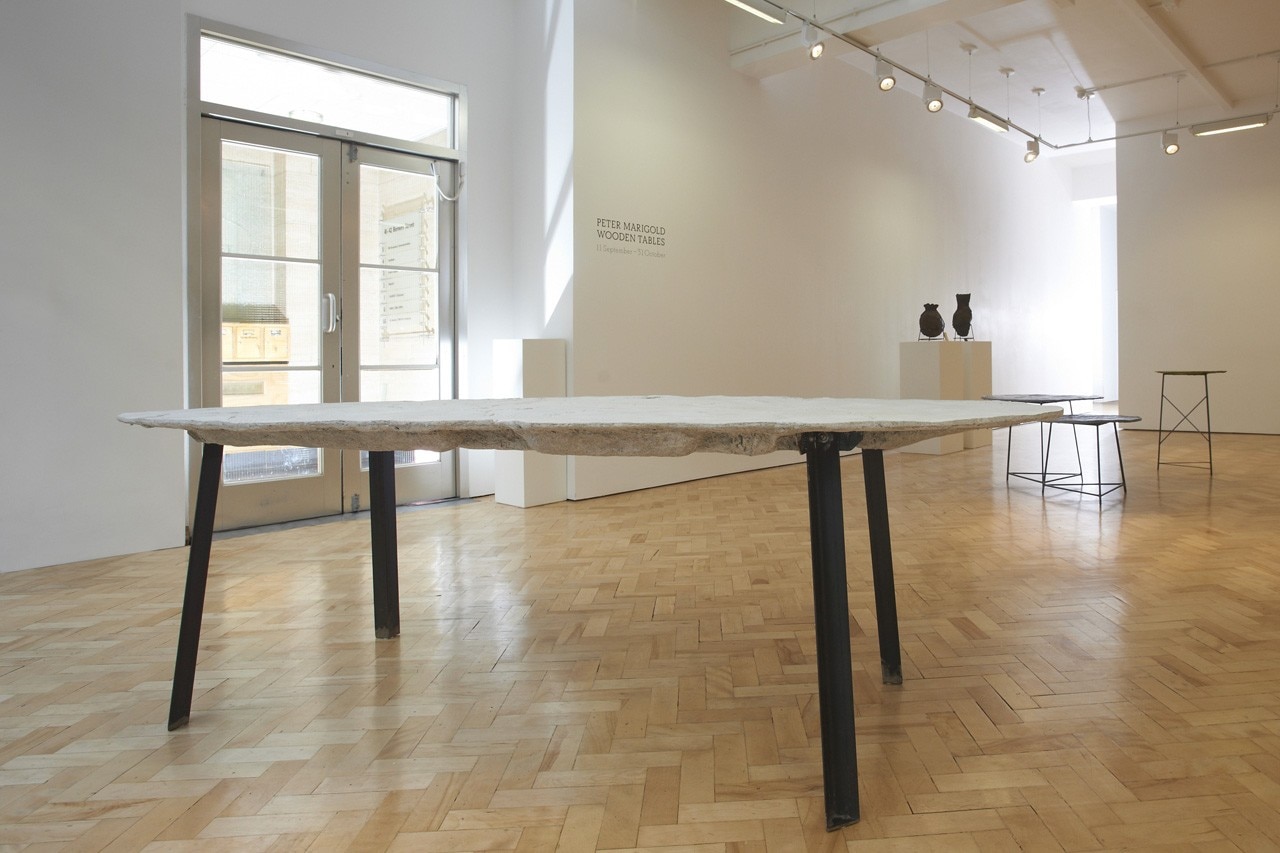 Per il periodo compreso tra il London Design Festival e la Frieze Art Fair, la Galleria Libby Sellers espone la serie di tavoli in legno di Peter Marigold.