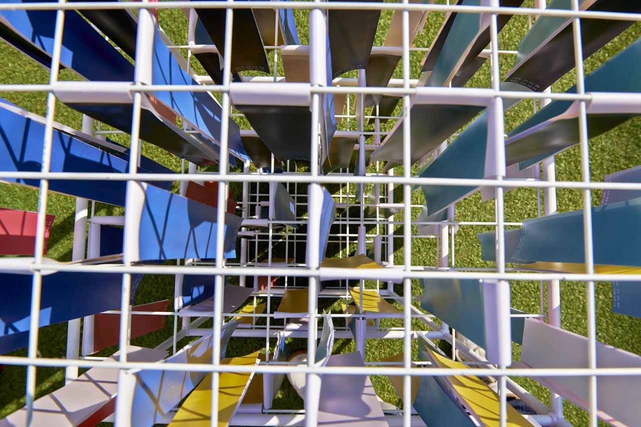 Quando lo spettatore si avvicina alla scultura, le schede rivelano storie e combinazioni diversi a seconda del punto di vista. Avvicinandosi, ci si immerge in una miriade di colori e toni che creano una forte esperienza sensoriale, cambiando al variare della prospettiva.