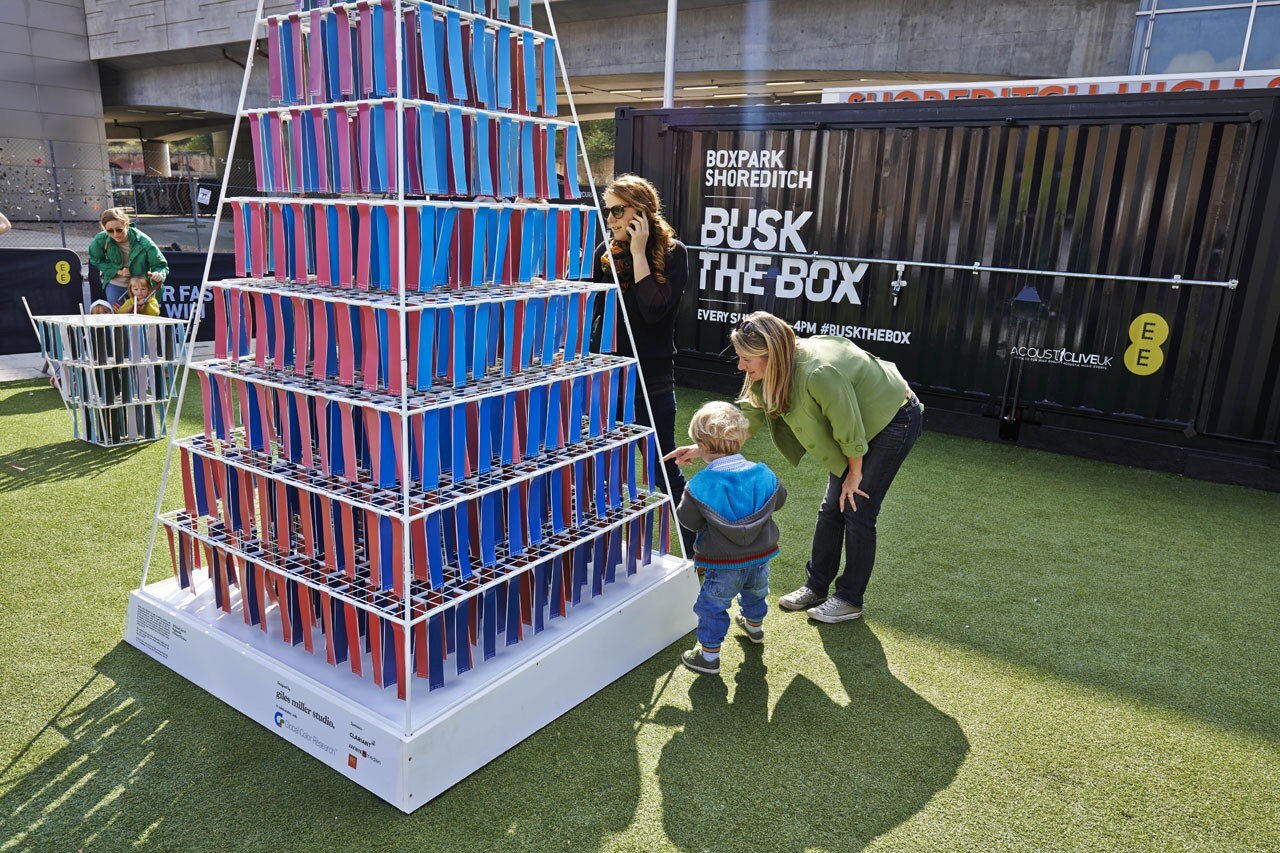 L’installazione porta luce e calore alla vivace zona intorno alla stazione di Shoreditch High Street, punto di ingresso allo Shoreditch Design triangle durante il London Design Festival.