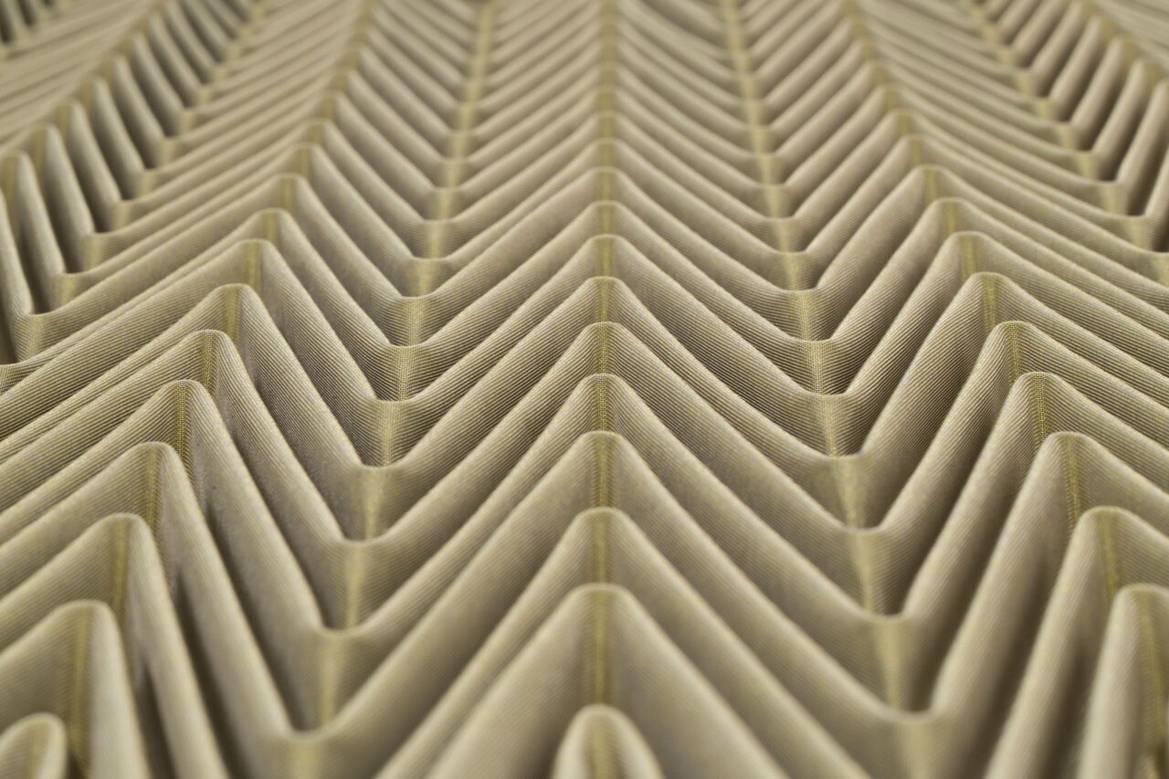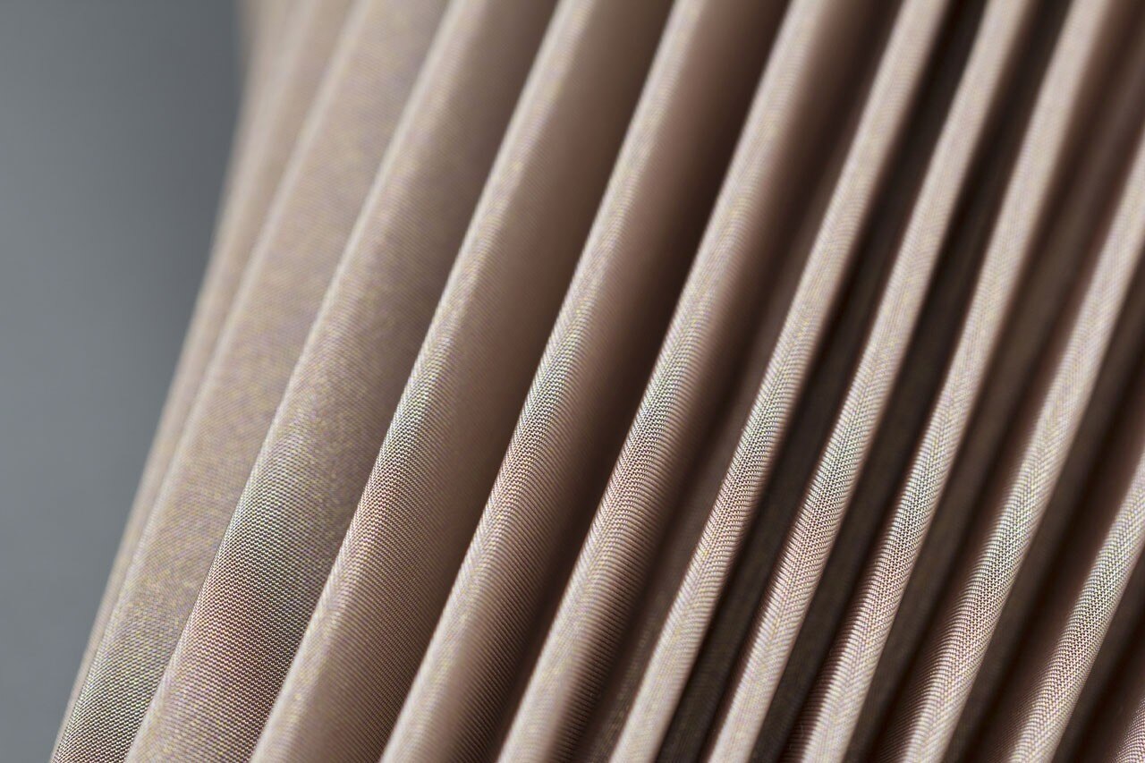 Kyla McCallum spiega: “Negli ultimi 30 anni l’industria della plissettatura in Gran Bretagna è drasticamente diminuita e queste abilità incredibili stanno morendo. Con questa collezione ho voluto portare nuova vita a questo settore, combinando materiali high-tech con antiche tecniche di produzione. Ho lavorato con i pleaters per sviluppare nuovi modelli che si ispirano alla progettazione sartoriale, declinandola nell’arredo.”