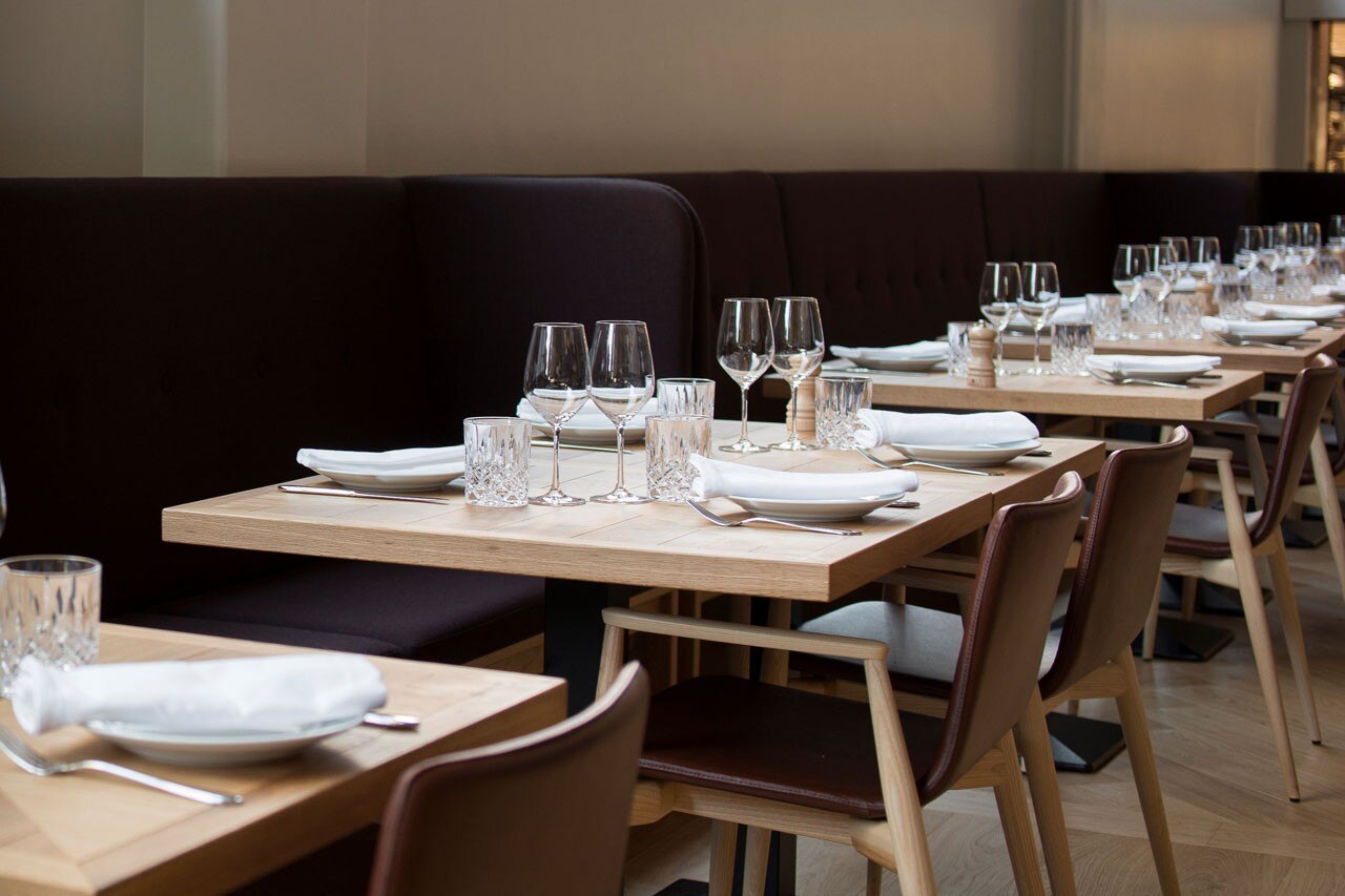 Una collezione in legno dal forte sapore nordico, nata da un’escursione immaginaria alle rive di un lago in Scandinavia, che si inserisce nell’atmosfera del ristorante creando un ambiente elegante e allo stesso tempo familiare.