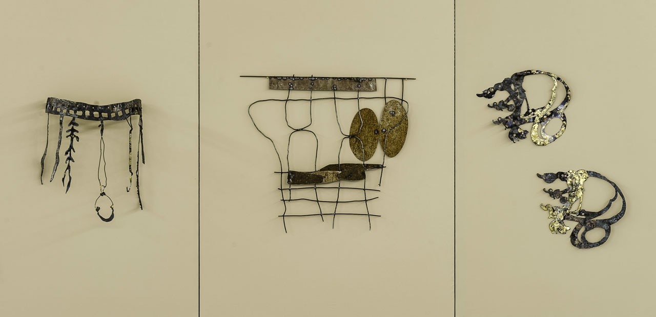 Le parure regali di Mellerio dits Meller – antica compagnia di gioielli che veste le regine fin dai tempi di Maria De Medici – perdono la loro patina di vanità e si trasformano in amuleti woodoo, catene, medaglie, scudi, armature. Insieme a questa rilettura dei codici vestimentari, “Meltingsun” esplora il linguaggio delle élite attraverso l’appropriazione di un campionario di gesti ed espressioni. Come i modelli di una collezione, i titoli di Rebet risuonano nelle sale di AlbumArte, evocando con grazioso cinismo immaginari esotici, coloniali, industriali, militari tra moda e imitazione della natura: Symphony of a satin chiffoneur, Heaven infused, Blue Maidens, Duchess on Tortoise Escape, Duet Solomite, Steamline crusaders, Wasteland, Nap in Hamada, Nécessaire pour Héritière.